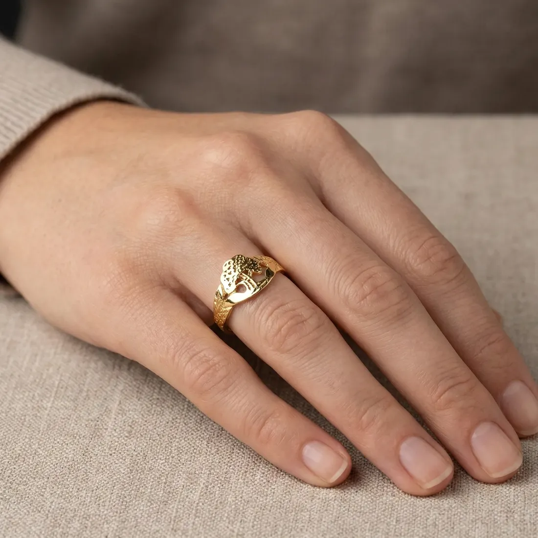 Anillo arbol calado enchapado en oro 18K