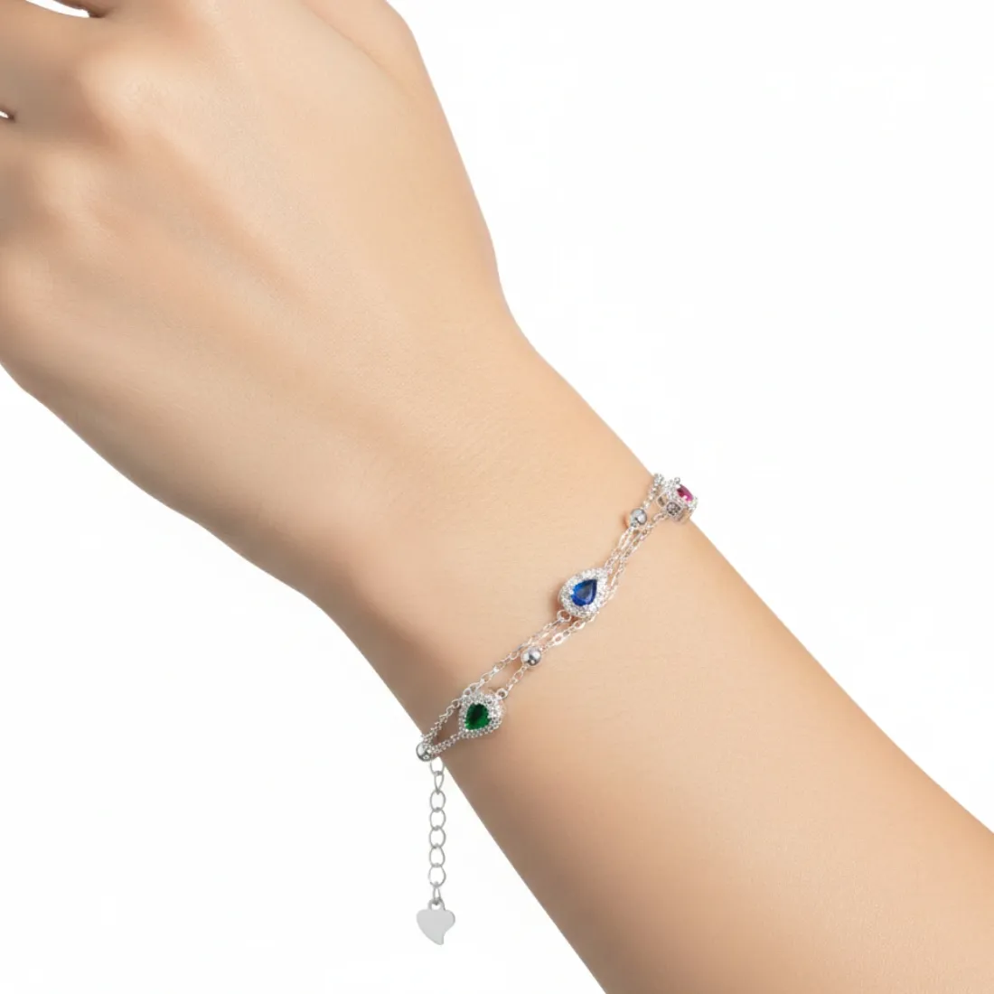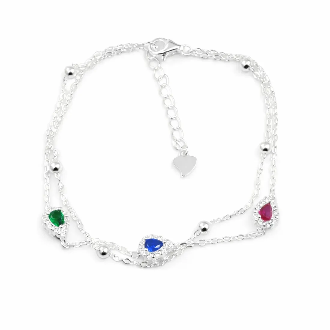 pulsera doble gota cubic, micro pave y bolitas plata importada