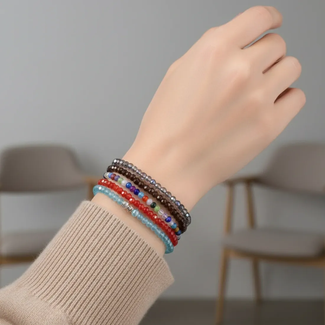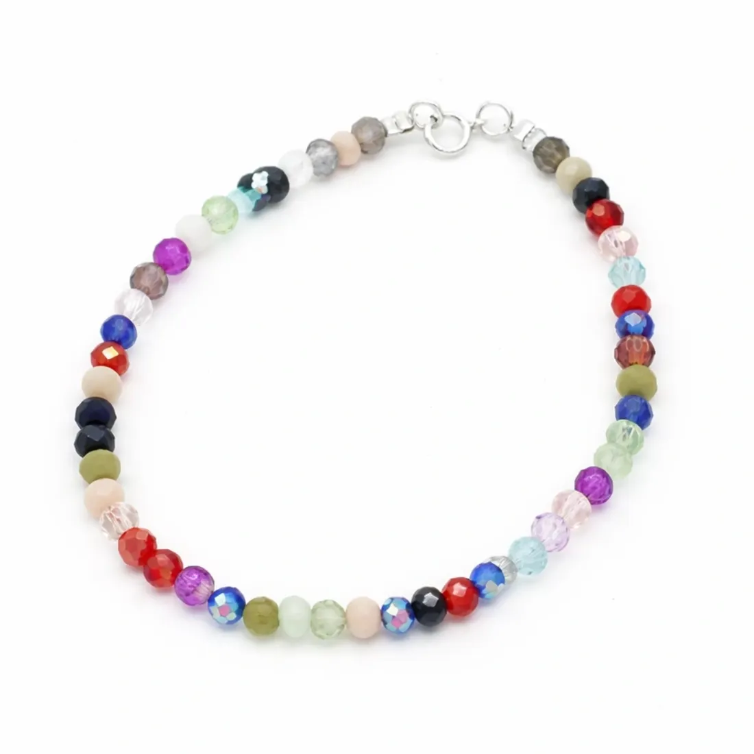 pulsera cristal bolitas facetadas con bolitas y dije nudo de bruja plata 92