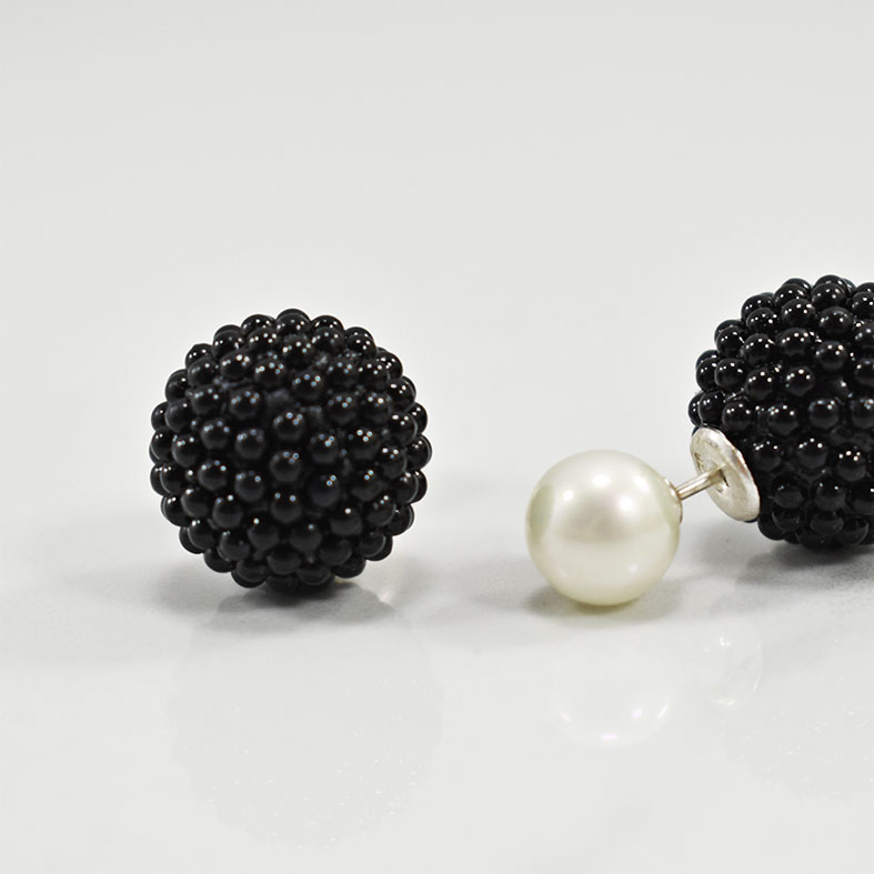 2X1 Aros dior microperlas negras 15mm y perla 8mm