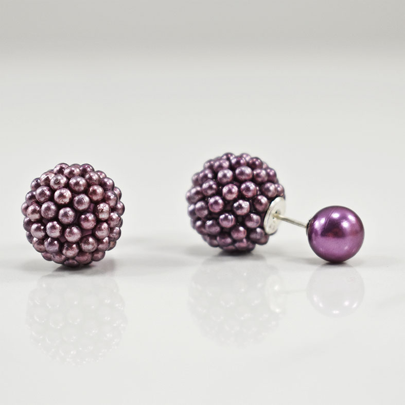 2X1 Aros dior microperlas purpura 15mm y perla purpura 8mm Plata 925
