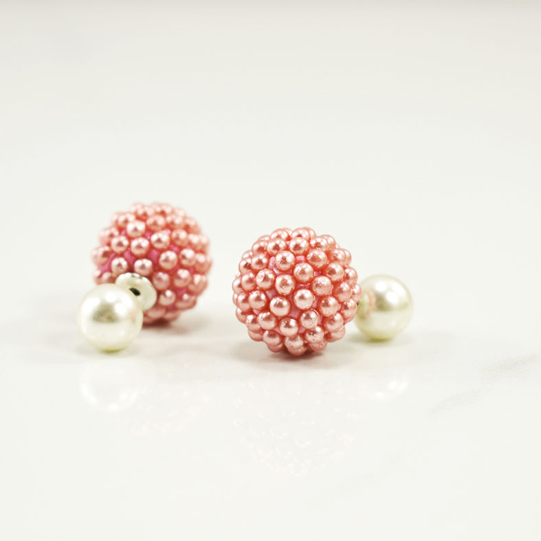 2X1 Aros dior microperlas rosa fuerte 15mm y perla 8mm
