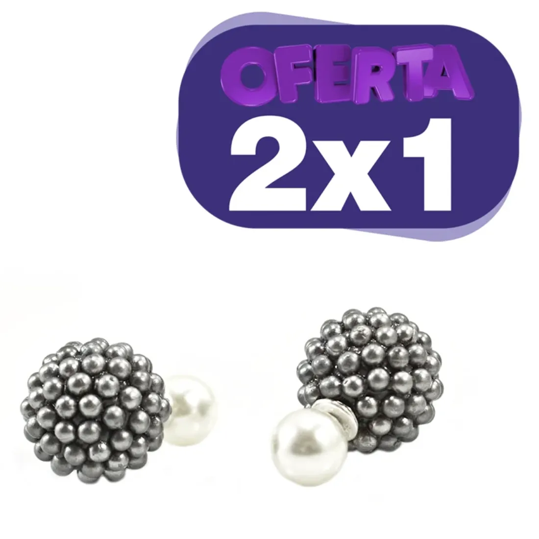 2X1 Aros dior microperlas gris oscuro 15mm y perla 8mm Plata 925