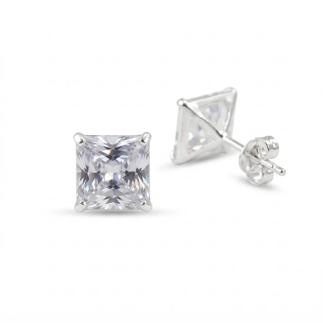 Ar brisura adornada con cristal cuadrado 9mm SW ZIRCONIA plata 925