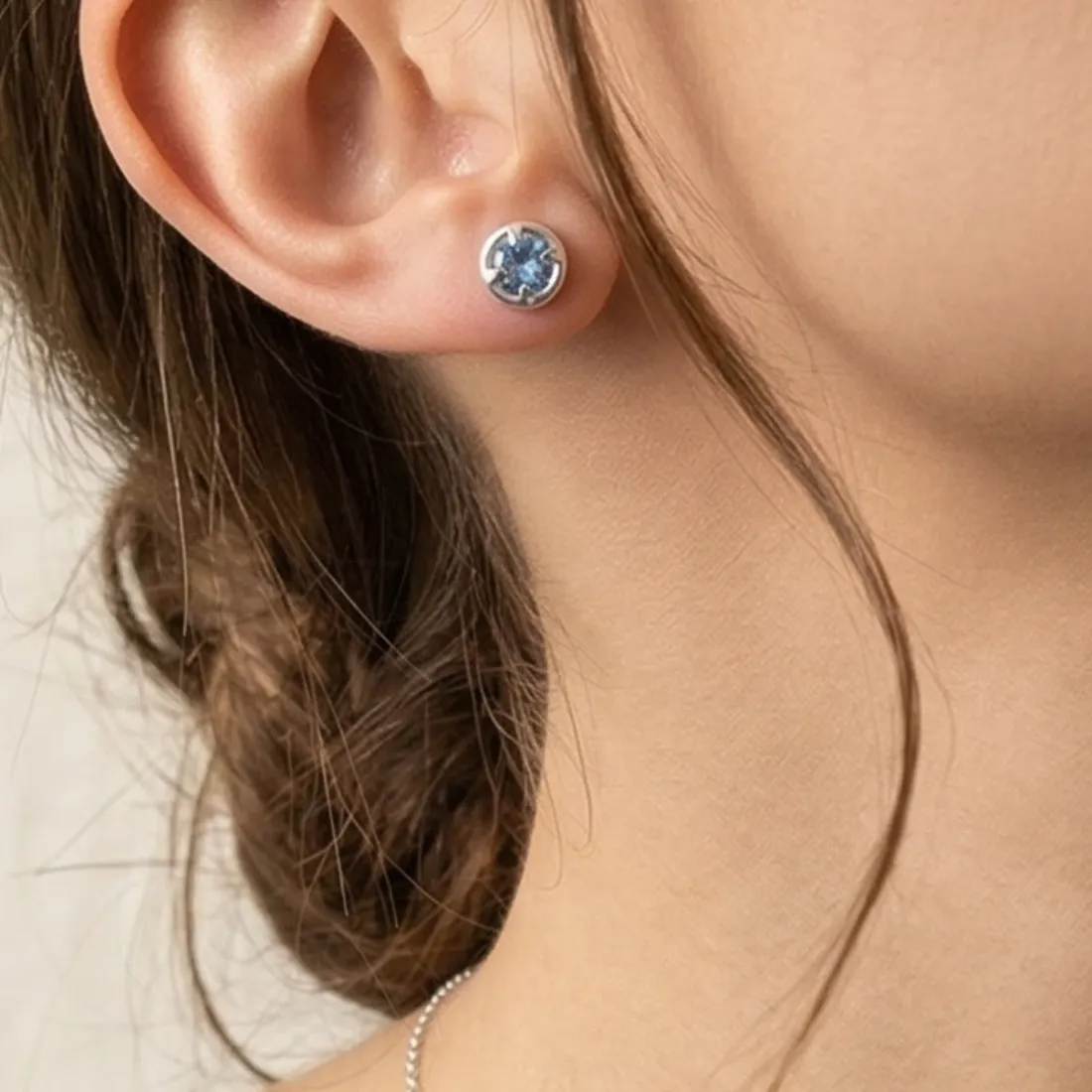 Ar pasantes círculo 8mm engarzace 4 puntas SW ZIRCONIA