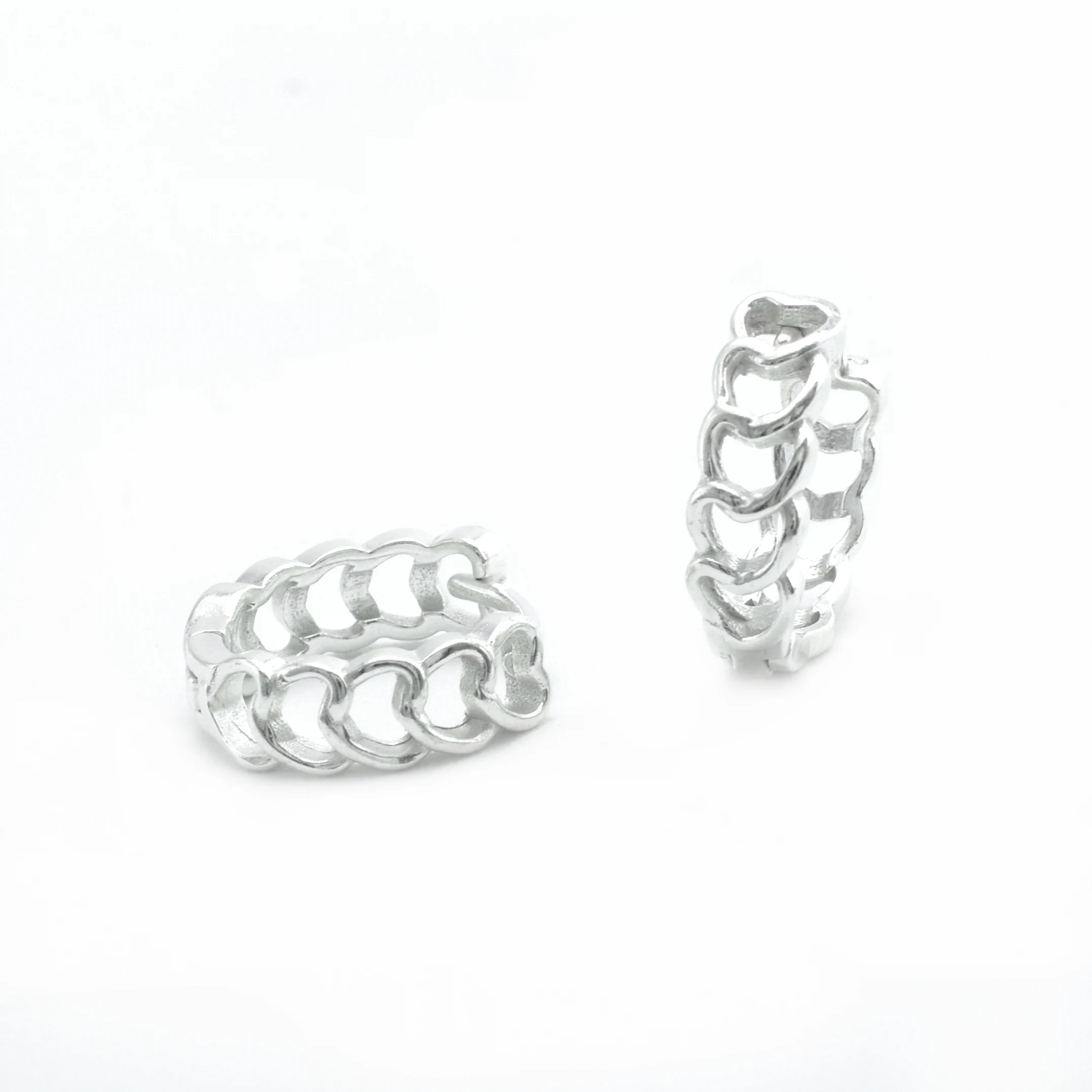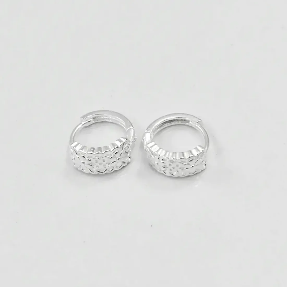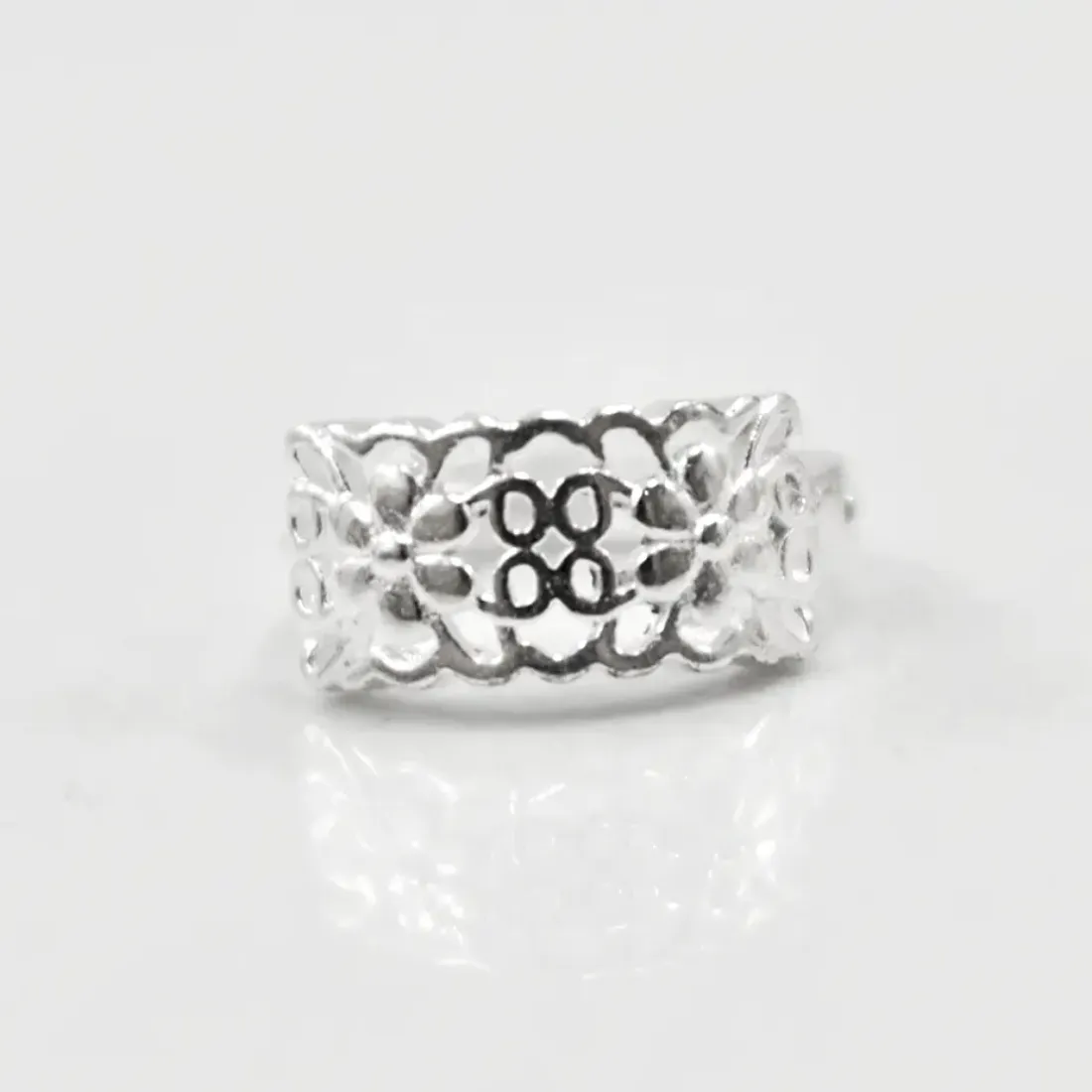 Aro cubano 14mm x 6mm espesor con flores y detalles calados plata