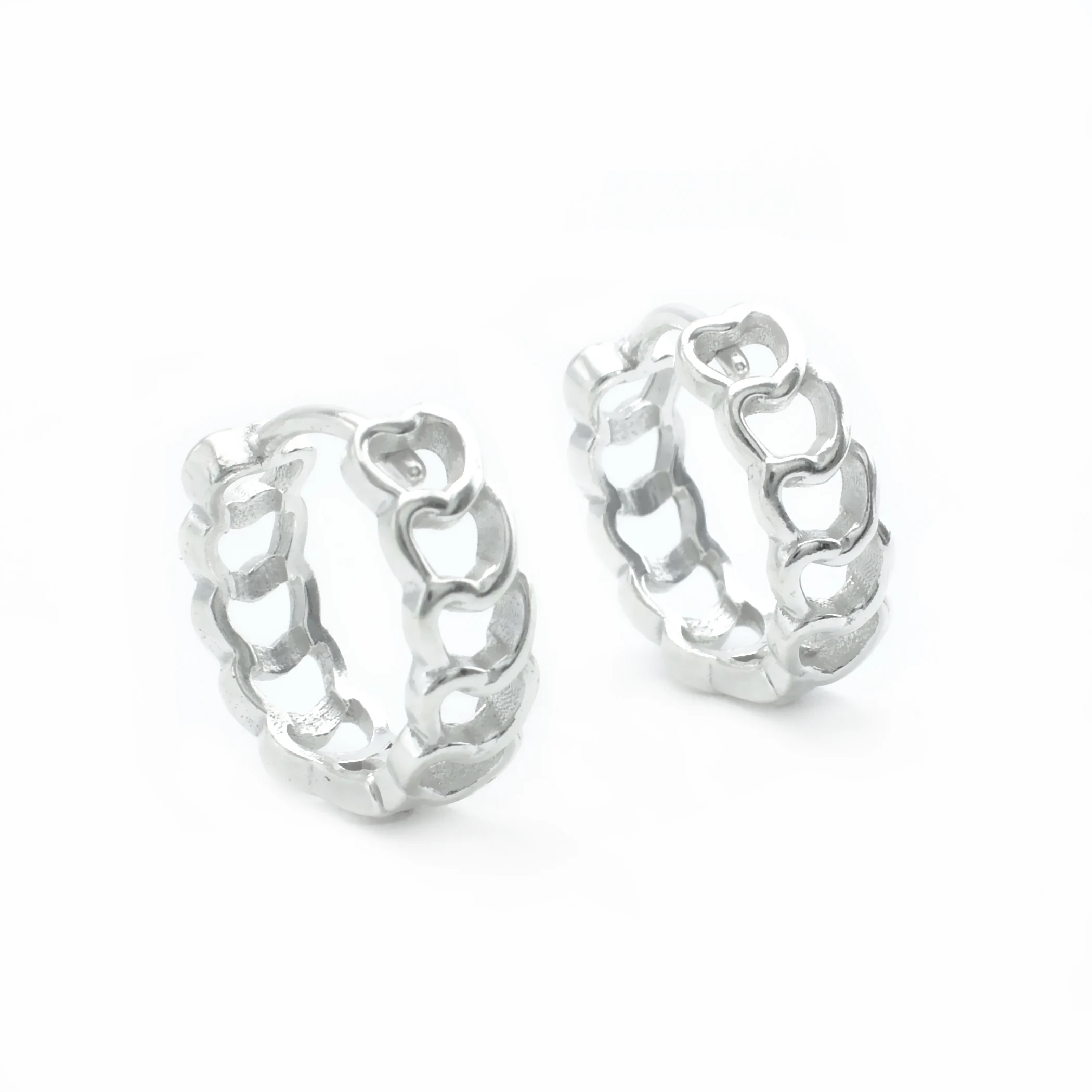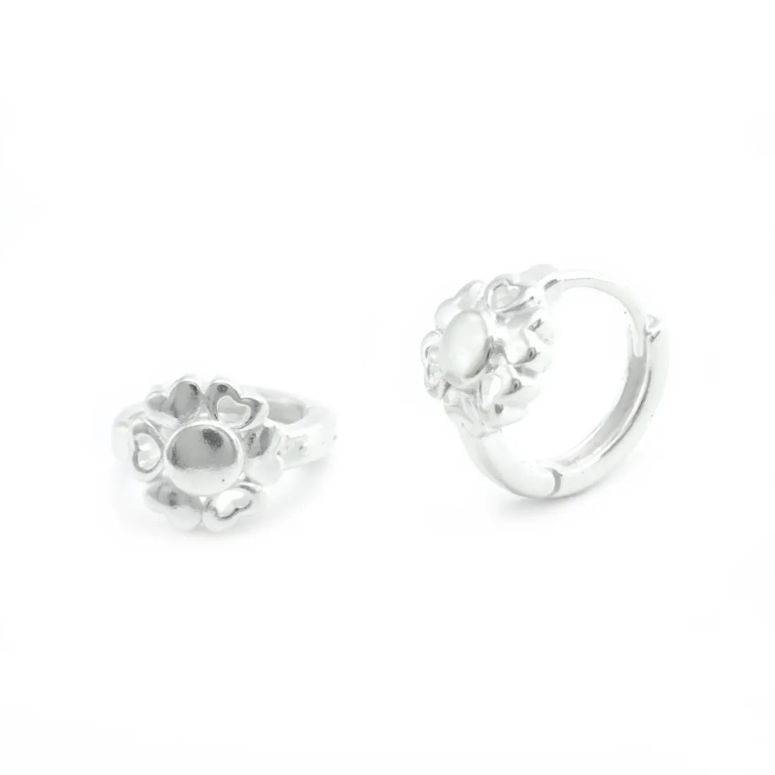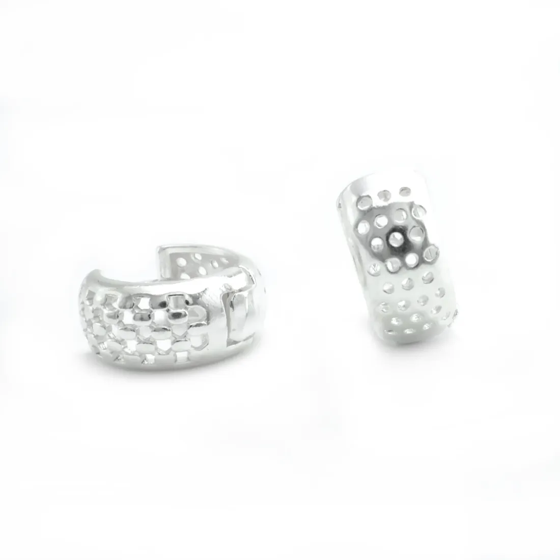 Aro cubano 14mm x 6mm espesor con flores y detalles calados plata