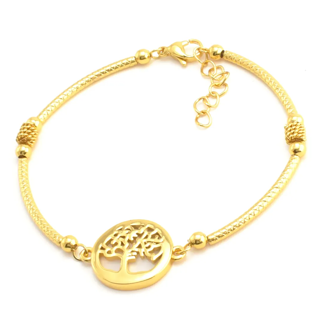 Pulsera arbol de la vida nacar 19.5cm acero dorado
