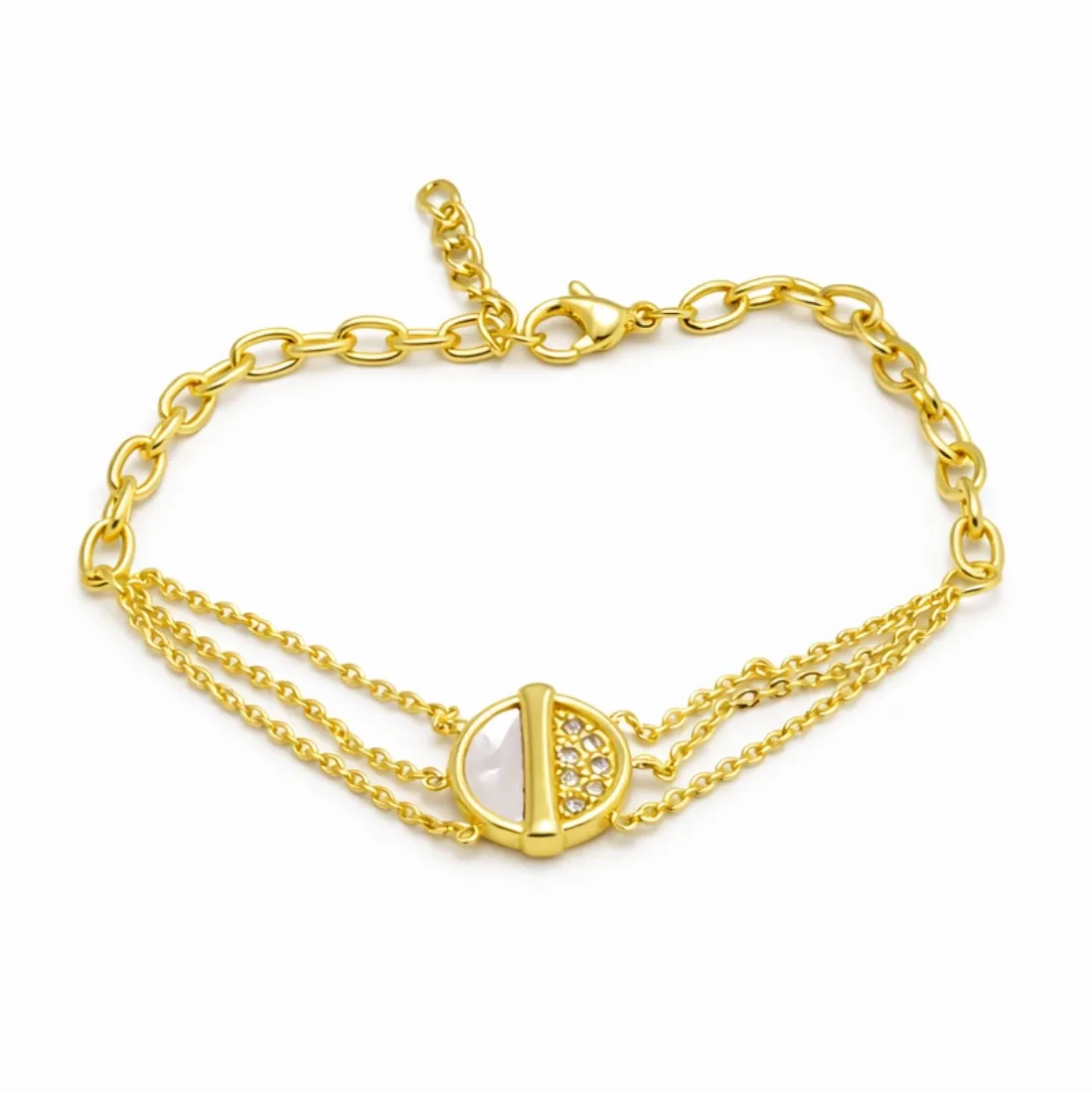 Pulsera doble corazon y oalitos acero dorado