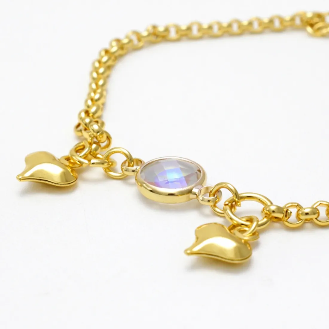 Pulsera corazon y cristal 19cm acero dorado