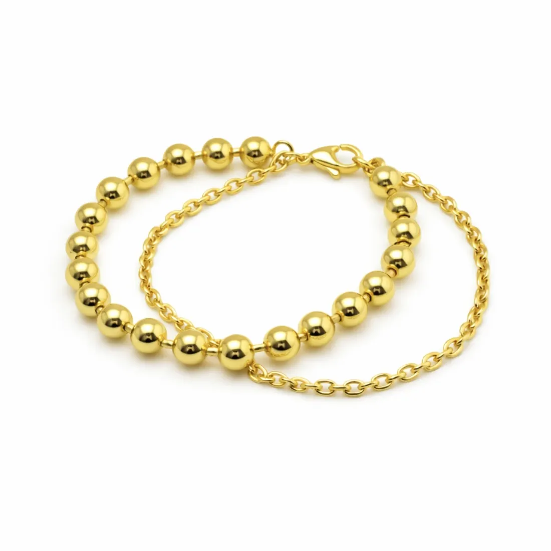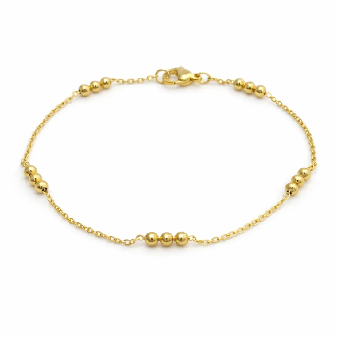 Pulsera con bolitas 19cm acero dorado