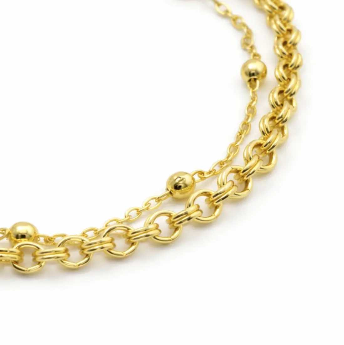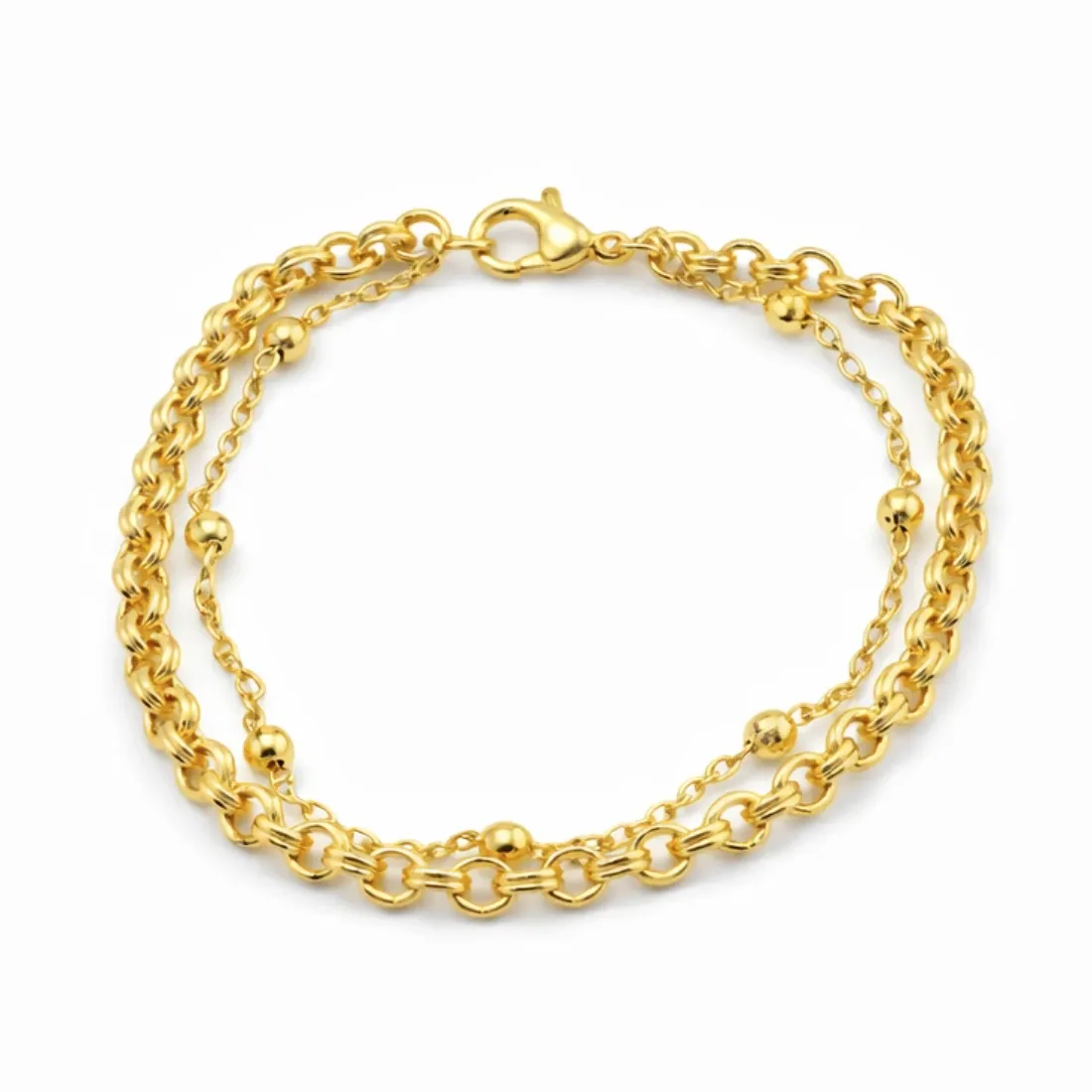 Pulseradoble arandela y bolitas 19cm acero dorado