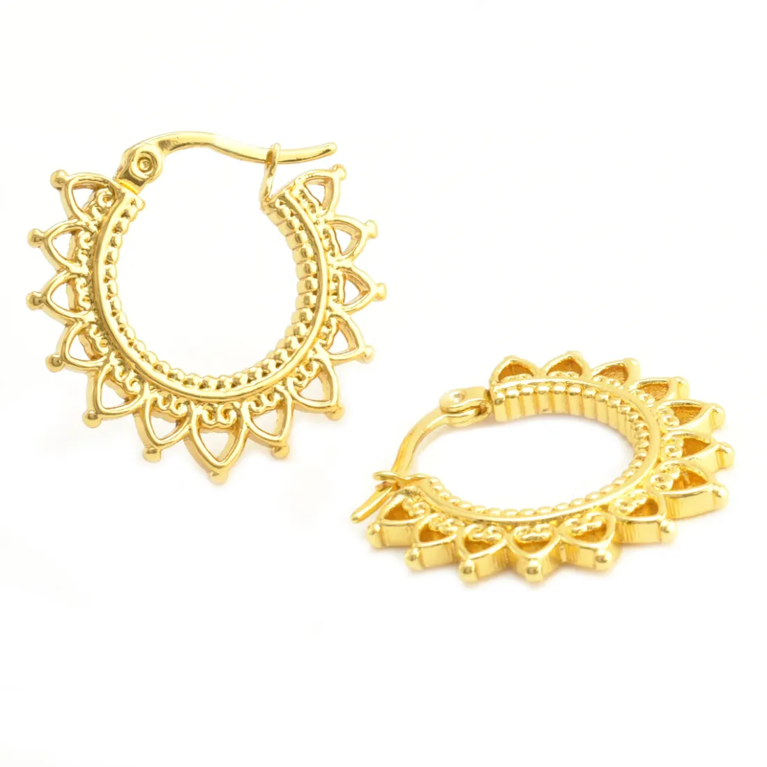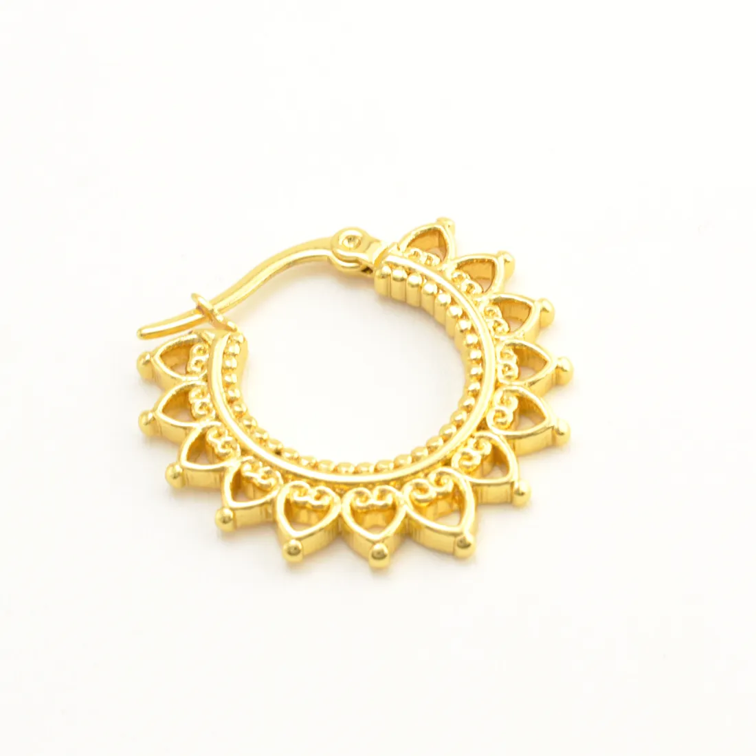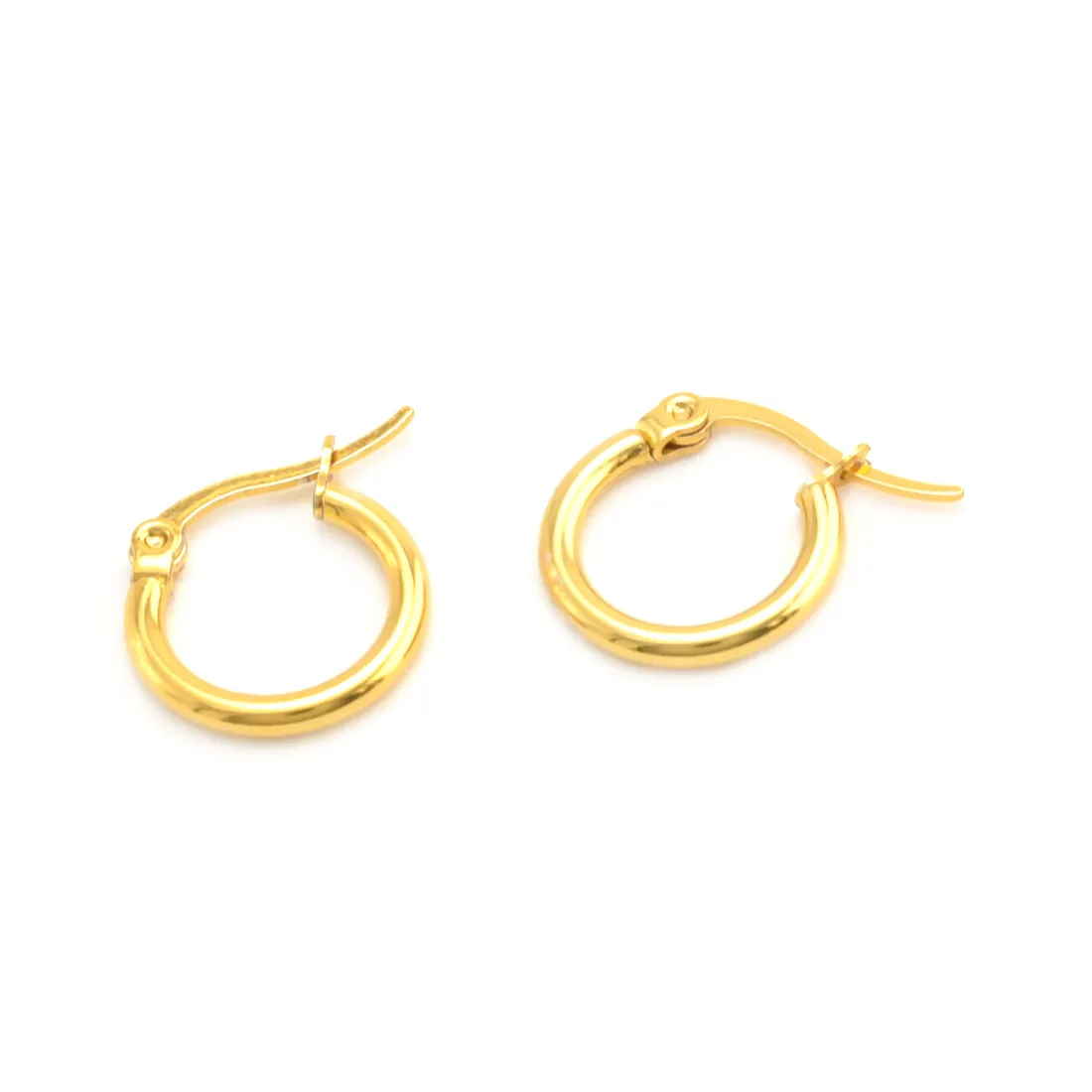 Aros pasante argolla tubo cristales 18mm acero dorado