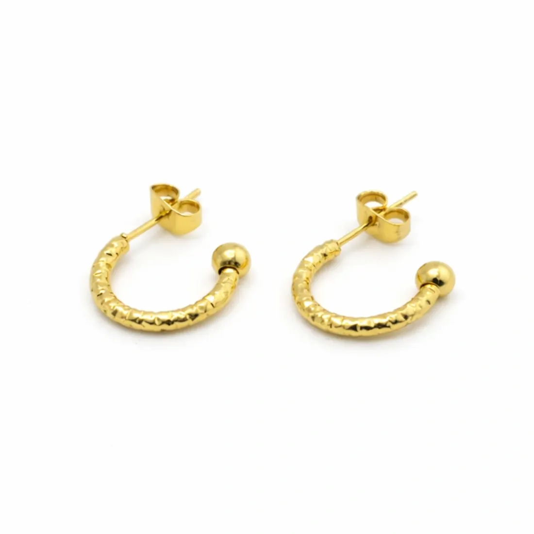 Aros media argolla texturada 15mm acero dorado