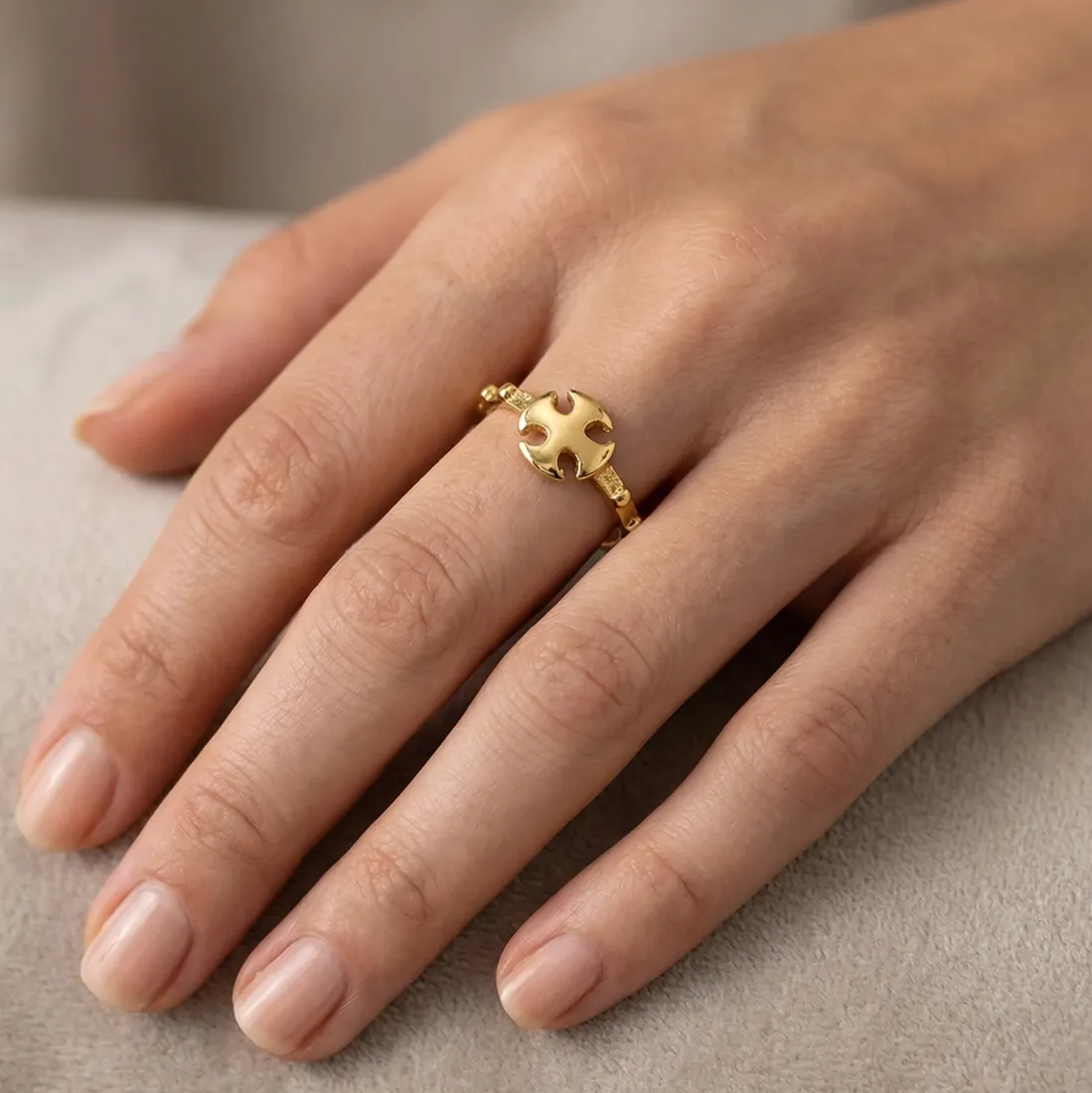 Anillo cruz enchapado en oro 18K