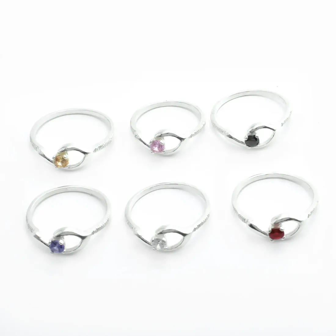Anillo cristal 9mm engarzado y detalles plata y oro