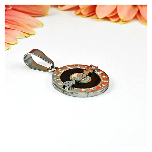 Dije acero quirúrgico redondo letras y nácar detalles 35mm