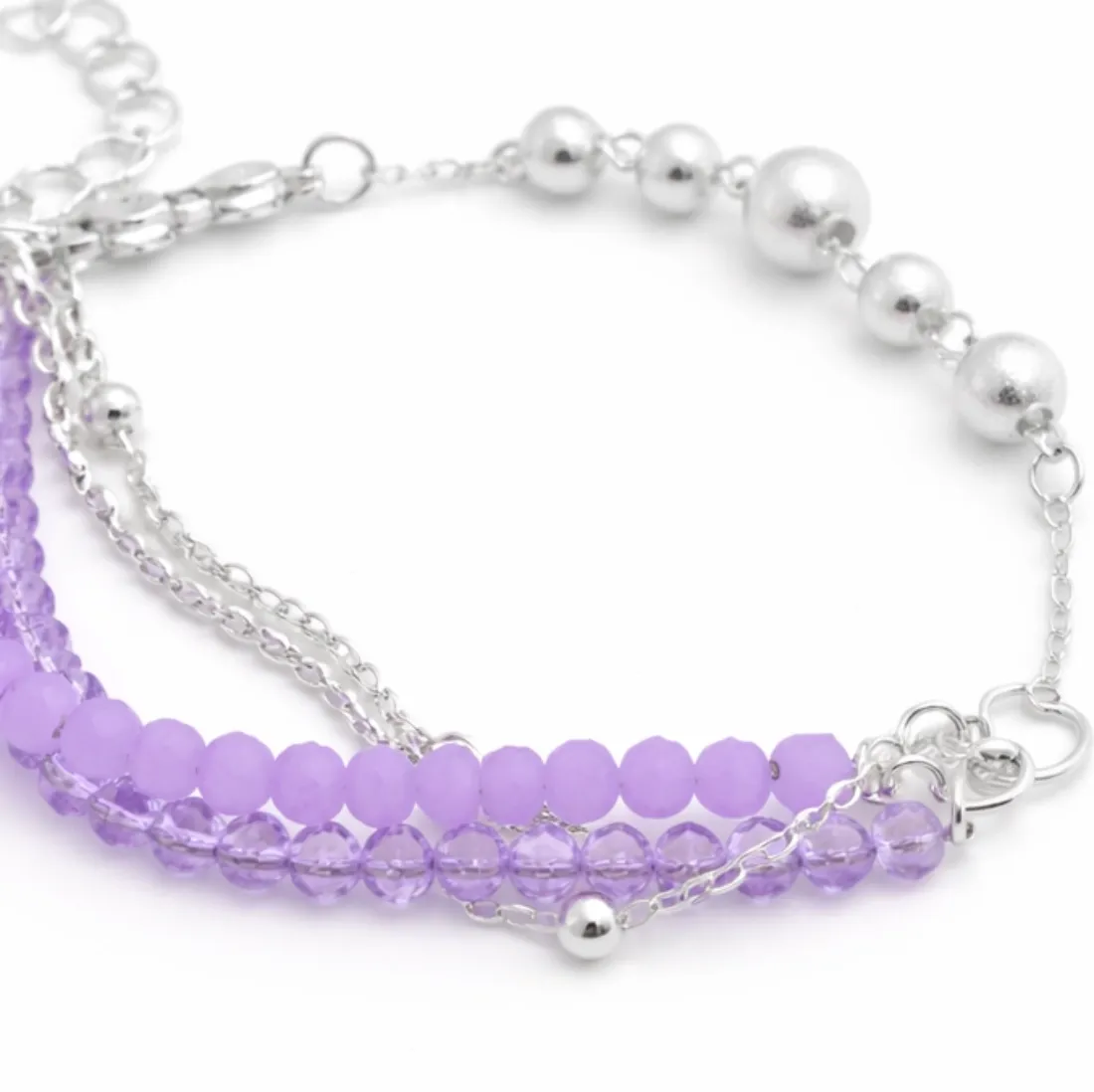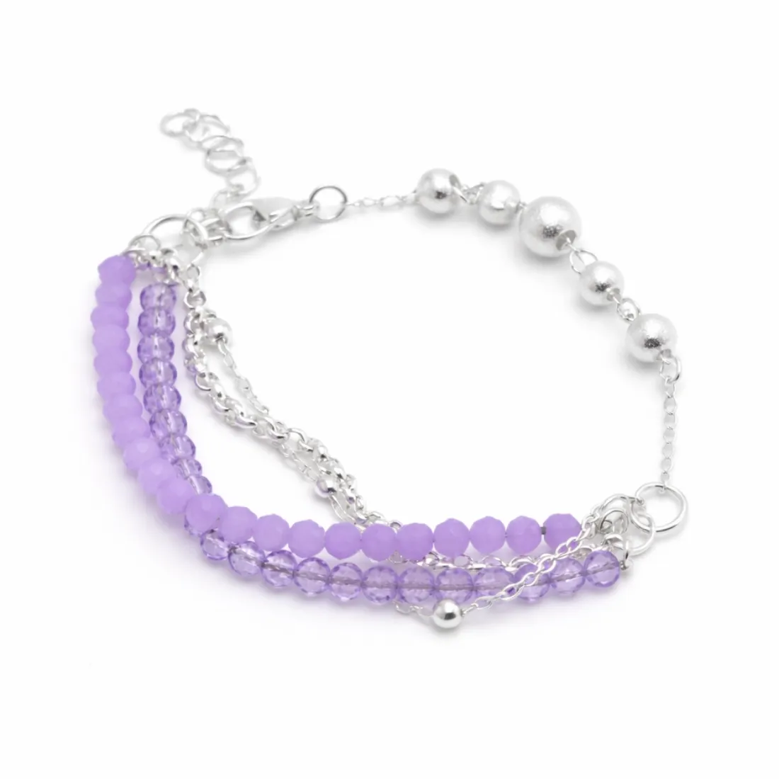 Pulsera con dijes cristal, luna y estrellas. acerro blanco
