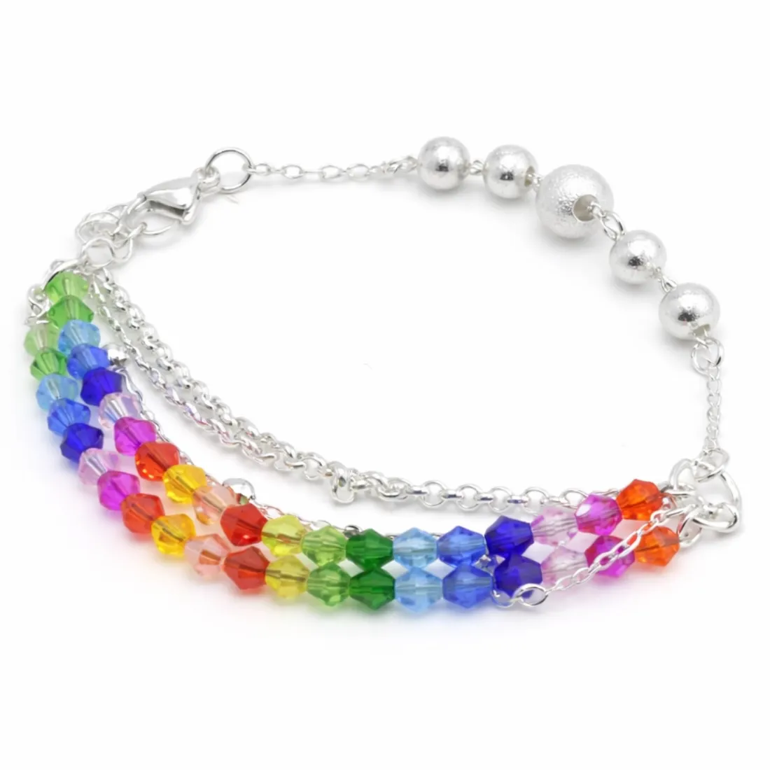 19cm Pul. acero blanco 3 corazones pavé y susanitos multicolor con extensor