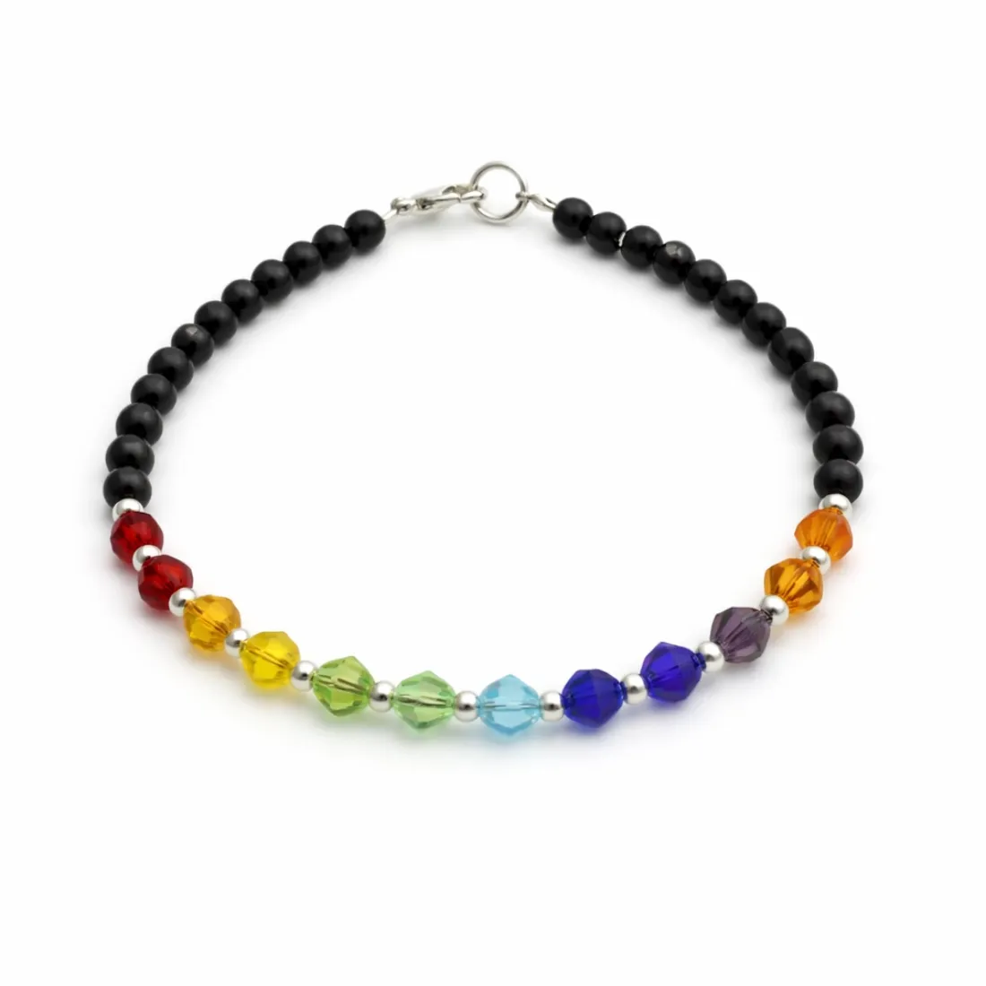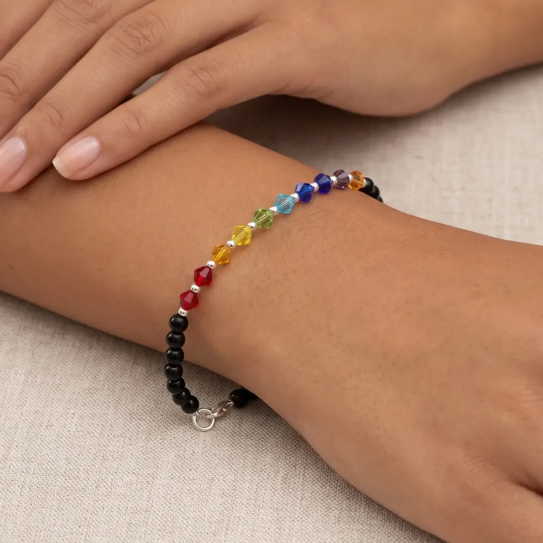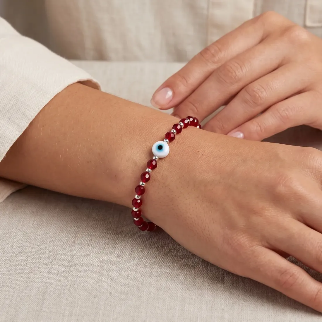 19cm Pul. force corazones ojo turco negro y cristales rojos acero blanco