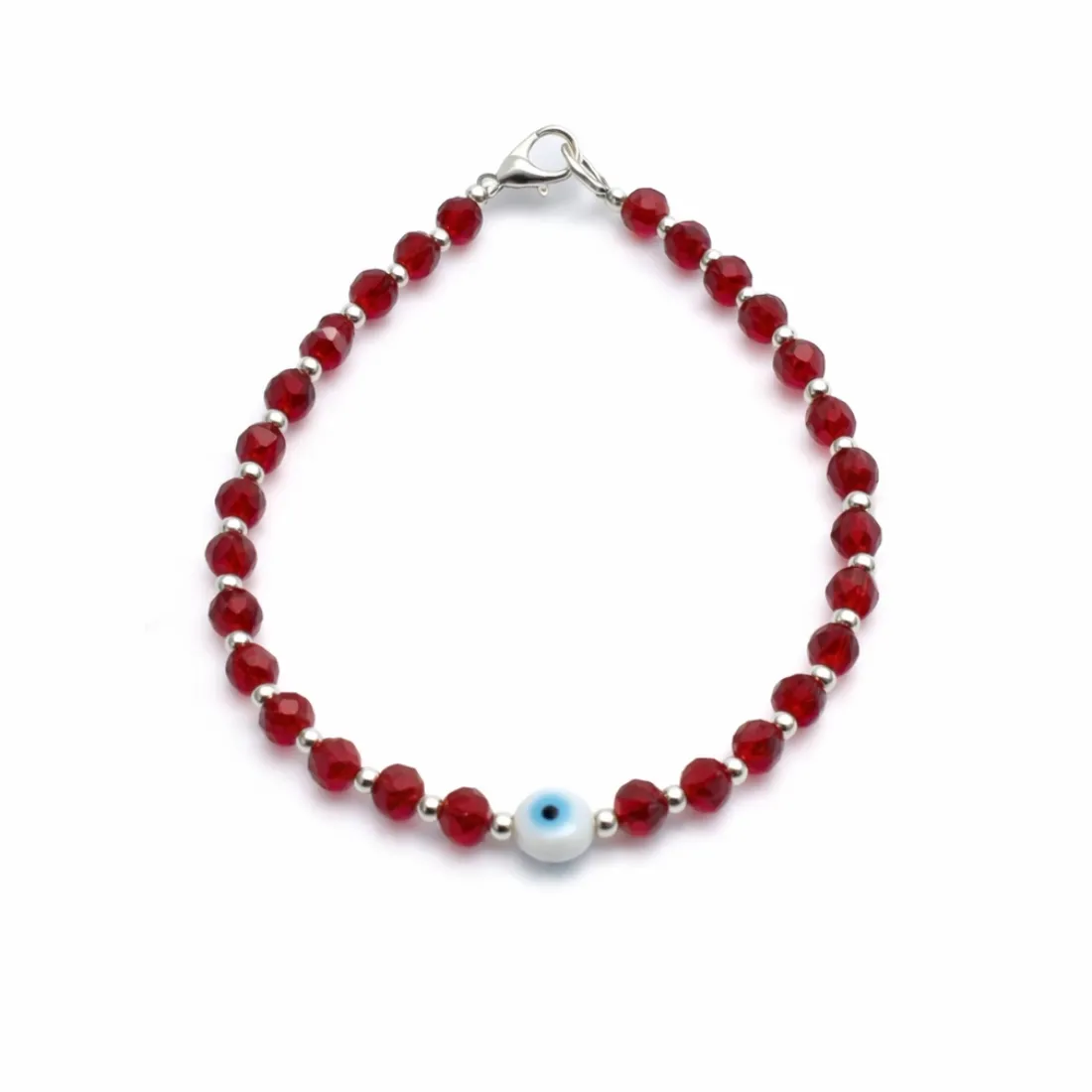 pulsera cristales c/ ojo turco 17cm acero blanco