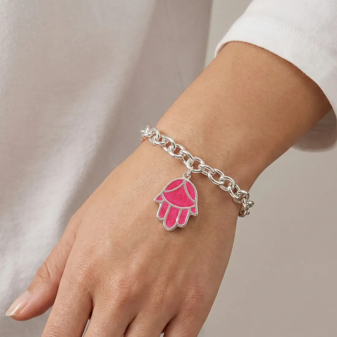 Pulsera con dije mano de fatima fucsia