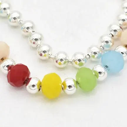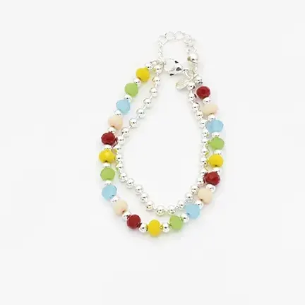 18cm Pulsera doble cristales y bolitas con extensor