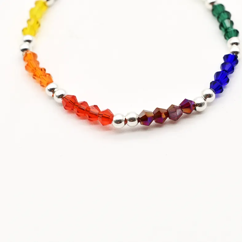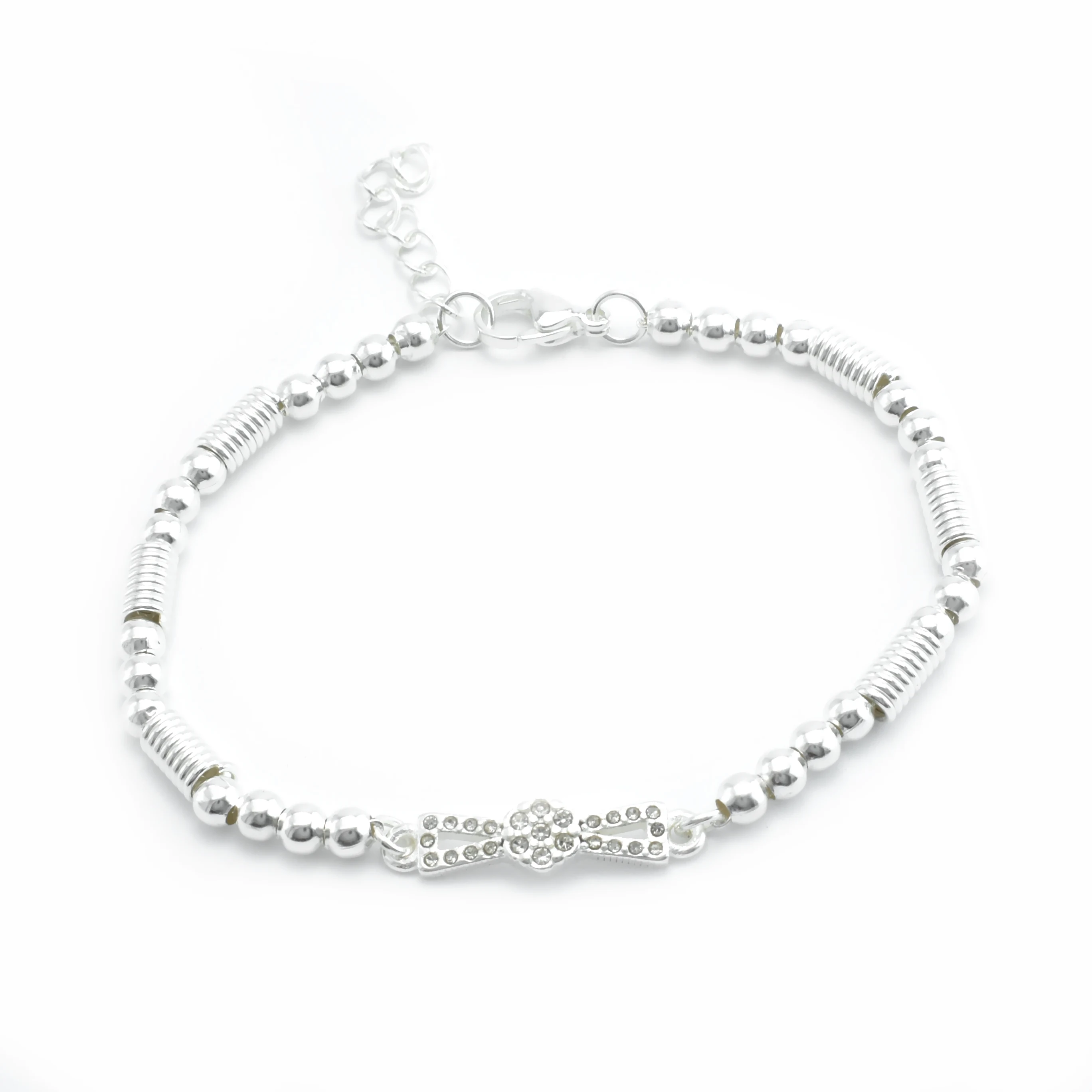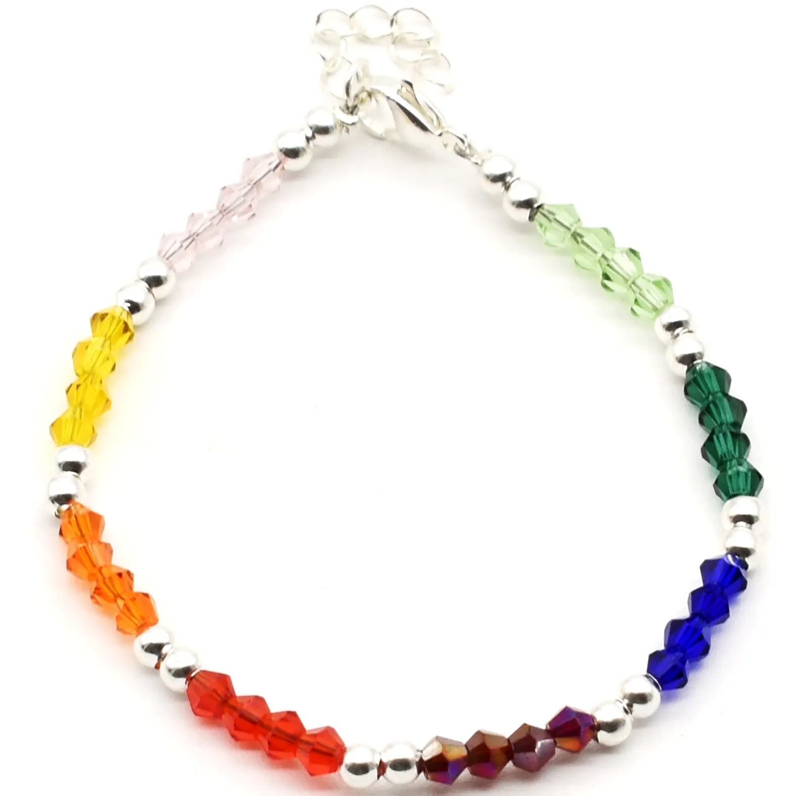 Pulsera bolitas colibri cristal 20cm con extensor acero blanco