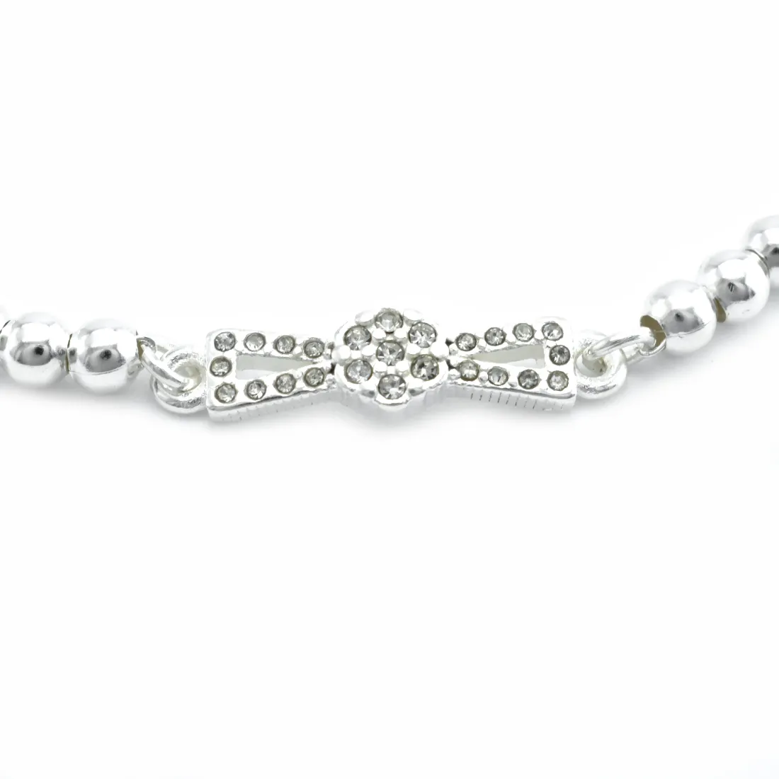 20cm Pulsera con cristales y bolitas con extensor acero blanco