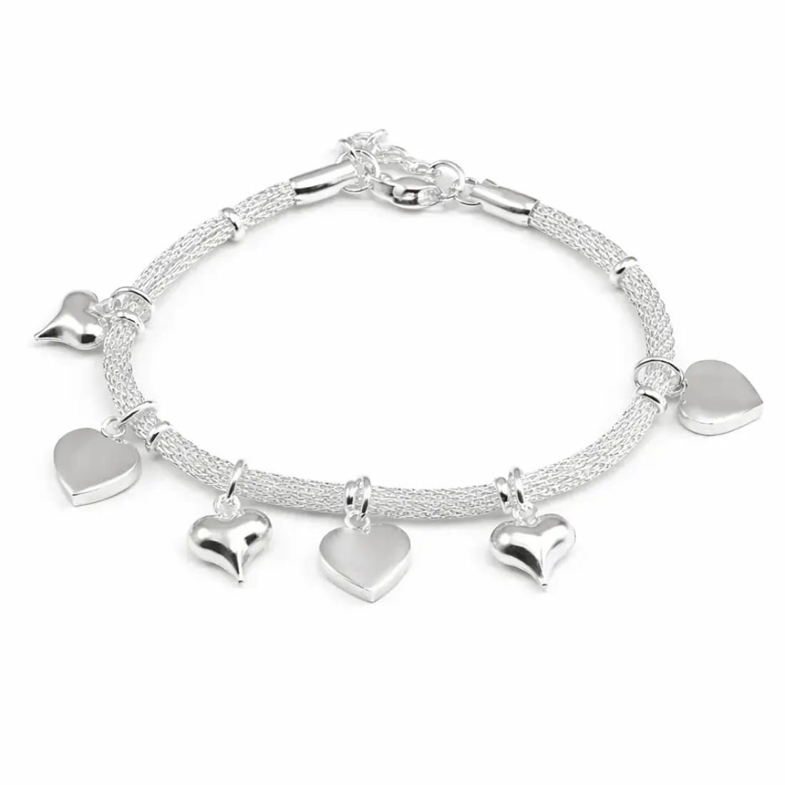 Pulsera cola de raton doble centro corazon y llave con extensor