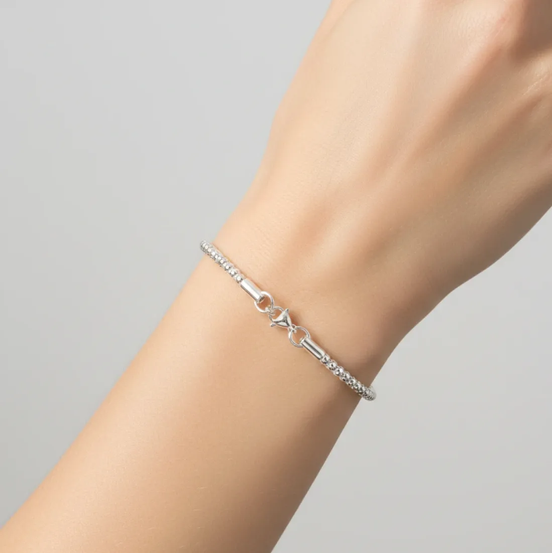 19cm Pulsera popcorn 1.9mm acero blanco
