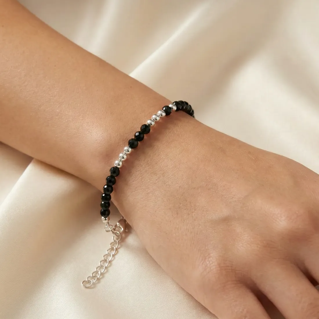 pulsera bolitas facetadas con bolitas 17cm acero blanco