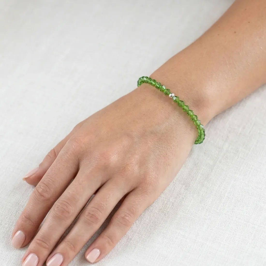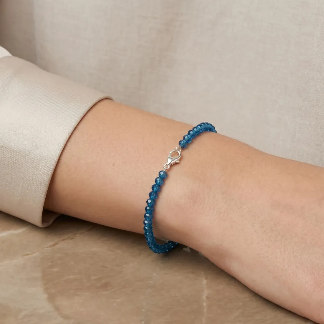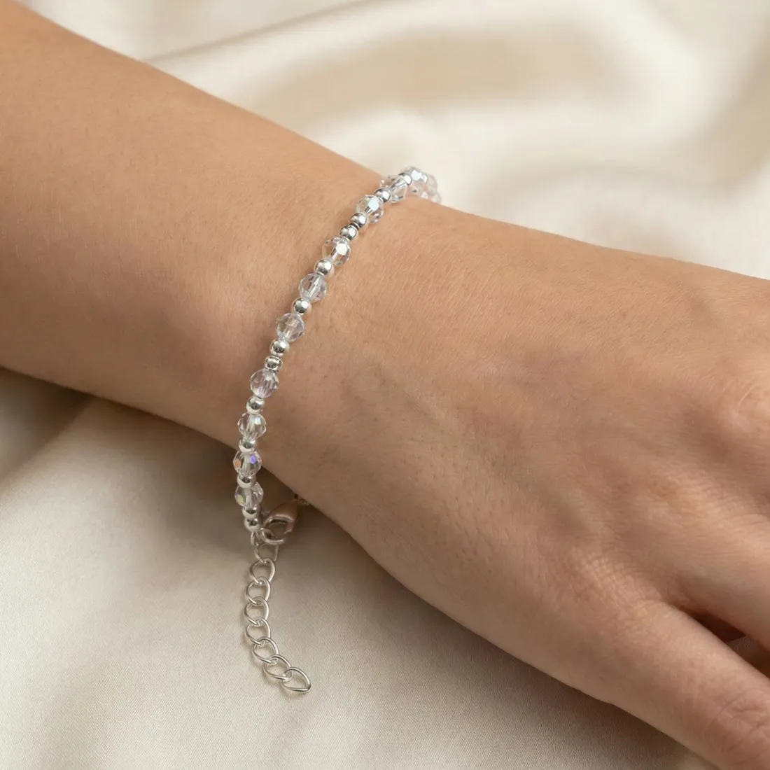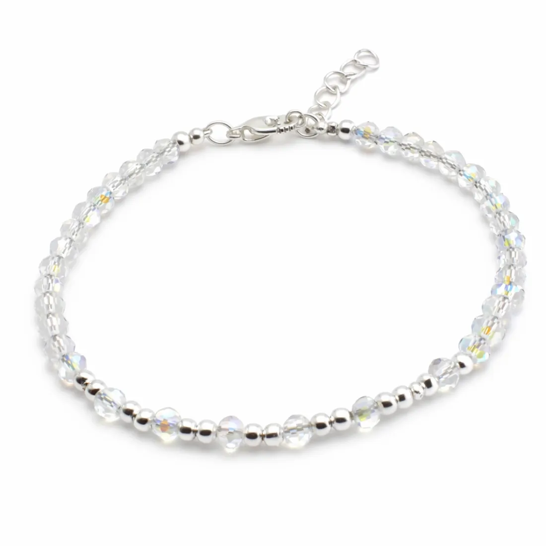 pulsera cristal bolitas facetadas con corona acero blanco