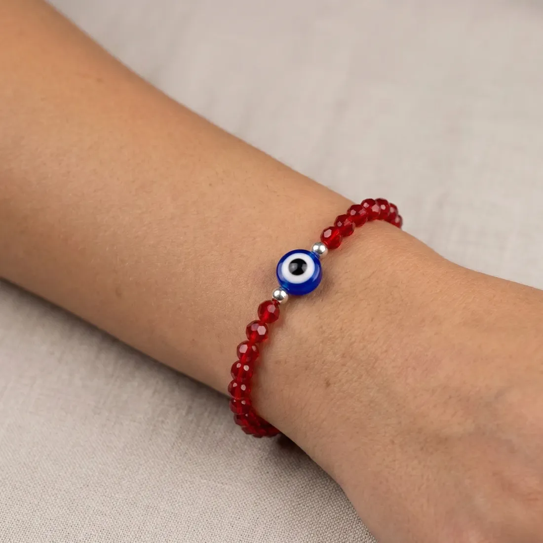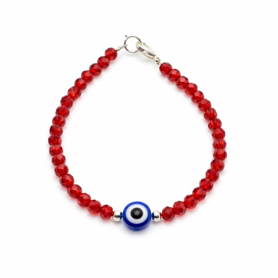 pulsera bolitas facetadas con bolitas y ojo turco 18cm acero blanco