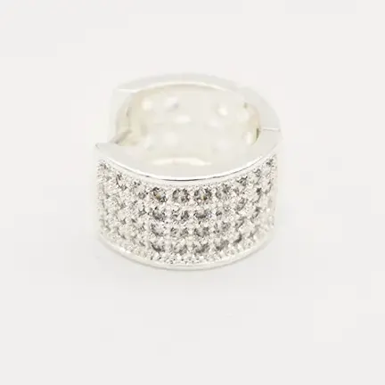Aros cubano 4 líneas pavé y flores caladas 13mm acero blanco