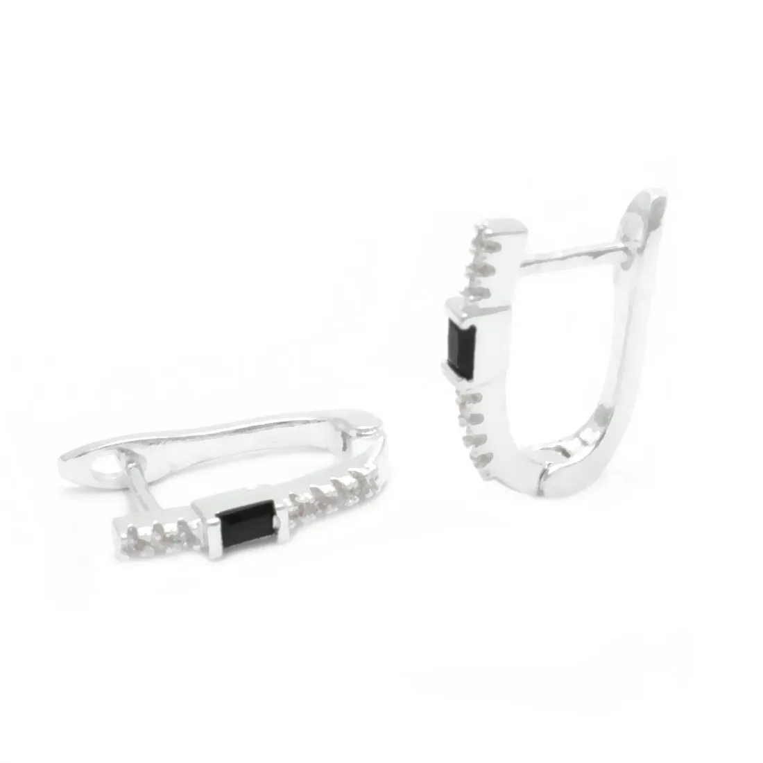 Aros baguet con onix acero blanco