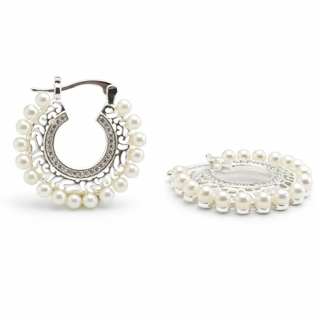 Aros argolla perlas 25mm acero blnco