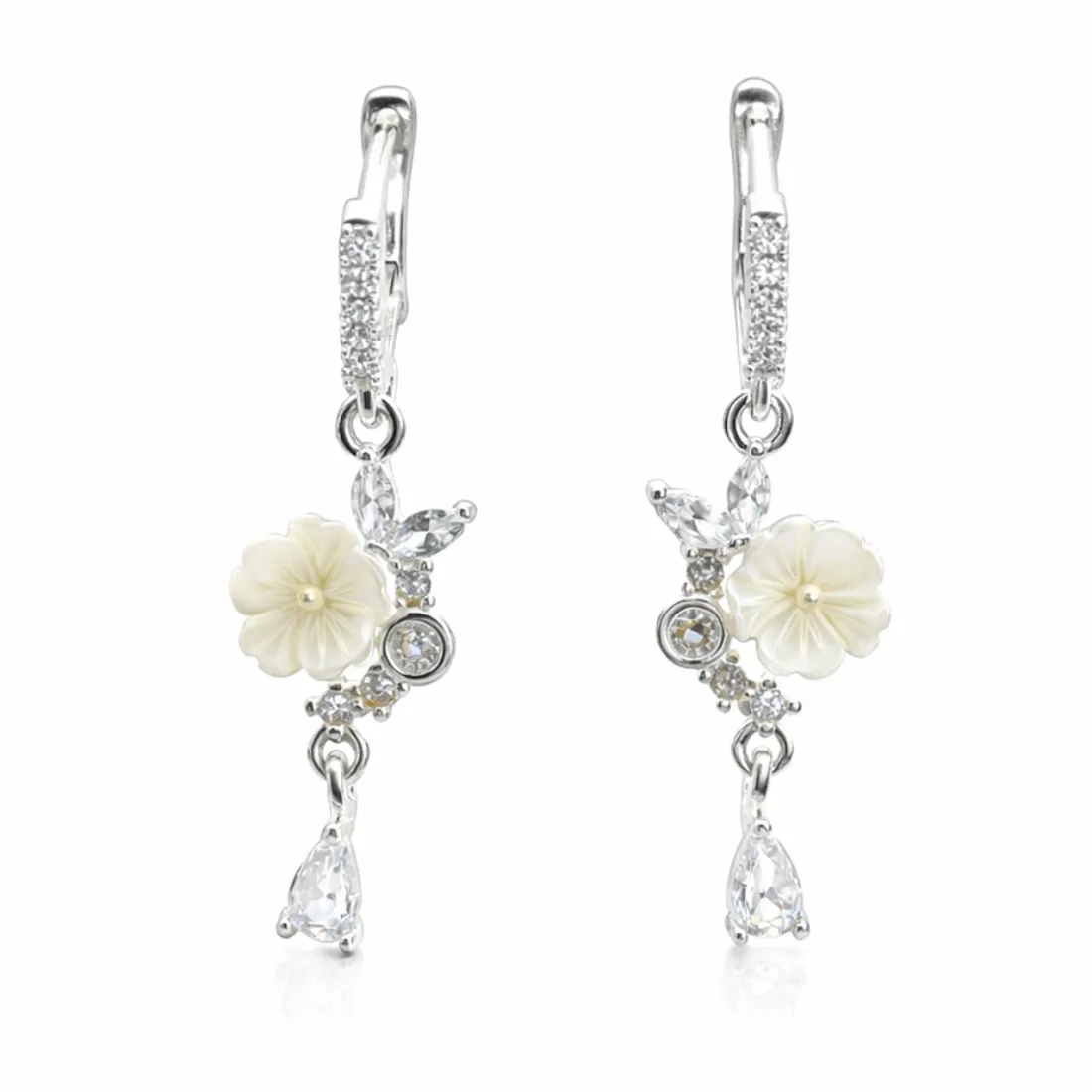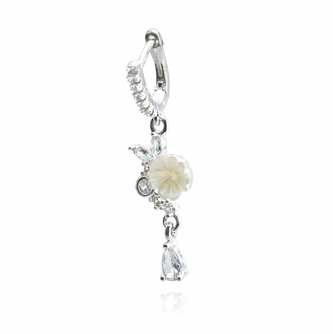 Aros flor nacar acero blanco