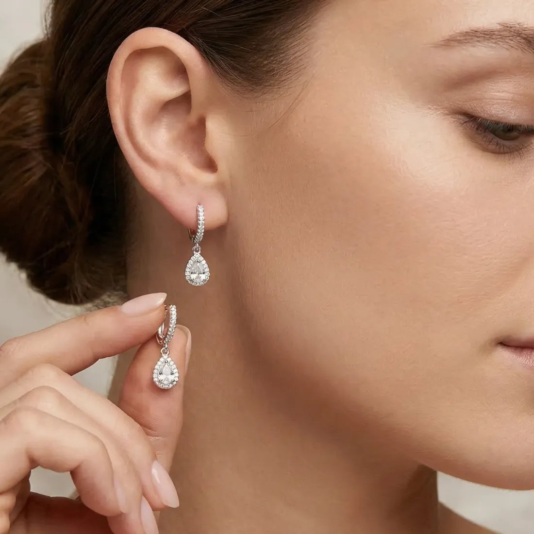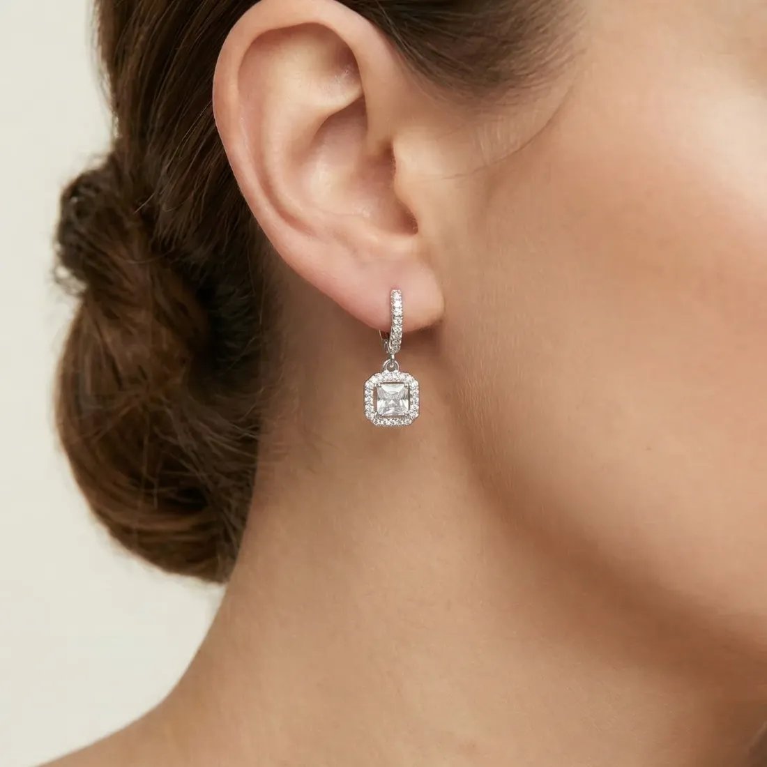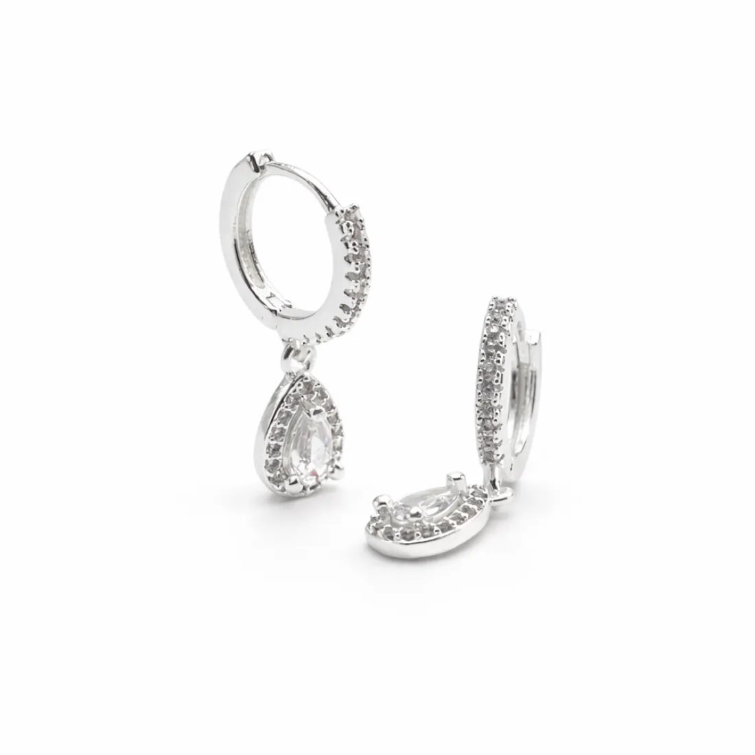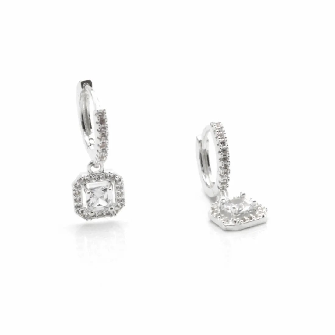 Aros cubano cristal colgante c/pave 22mm acero blanco