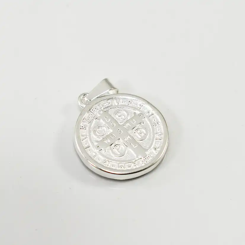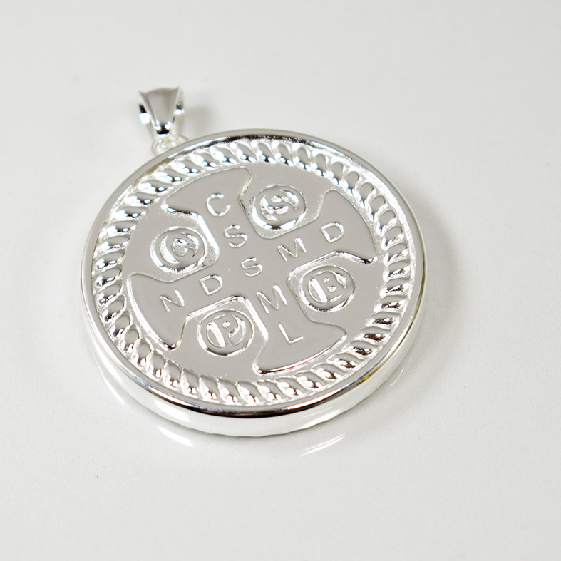 Dije círculo corona San Benito 45cm acero blanco