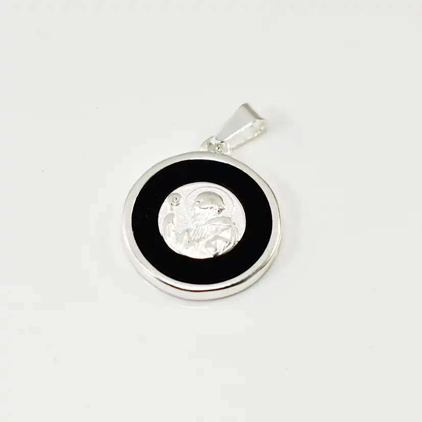 Dije san benito esmalte negro 20mm a. blanco