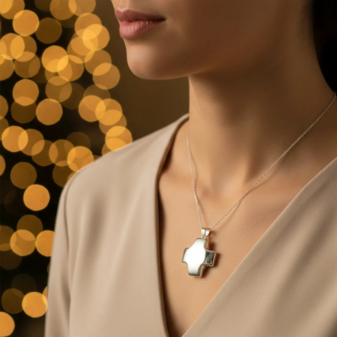 Dije cruz nacar 30mm acero blanco