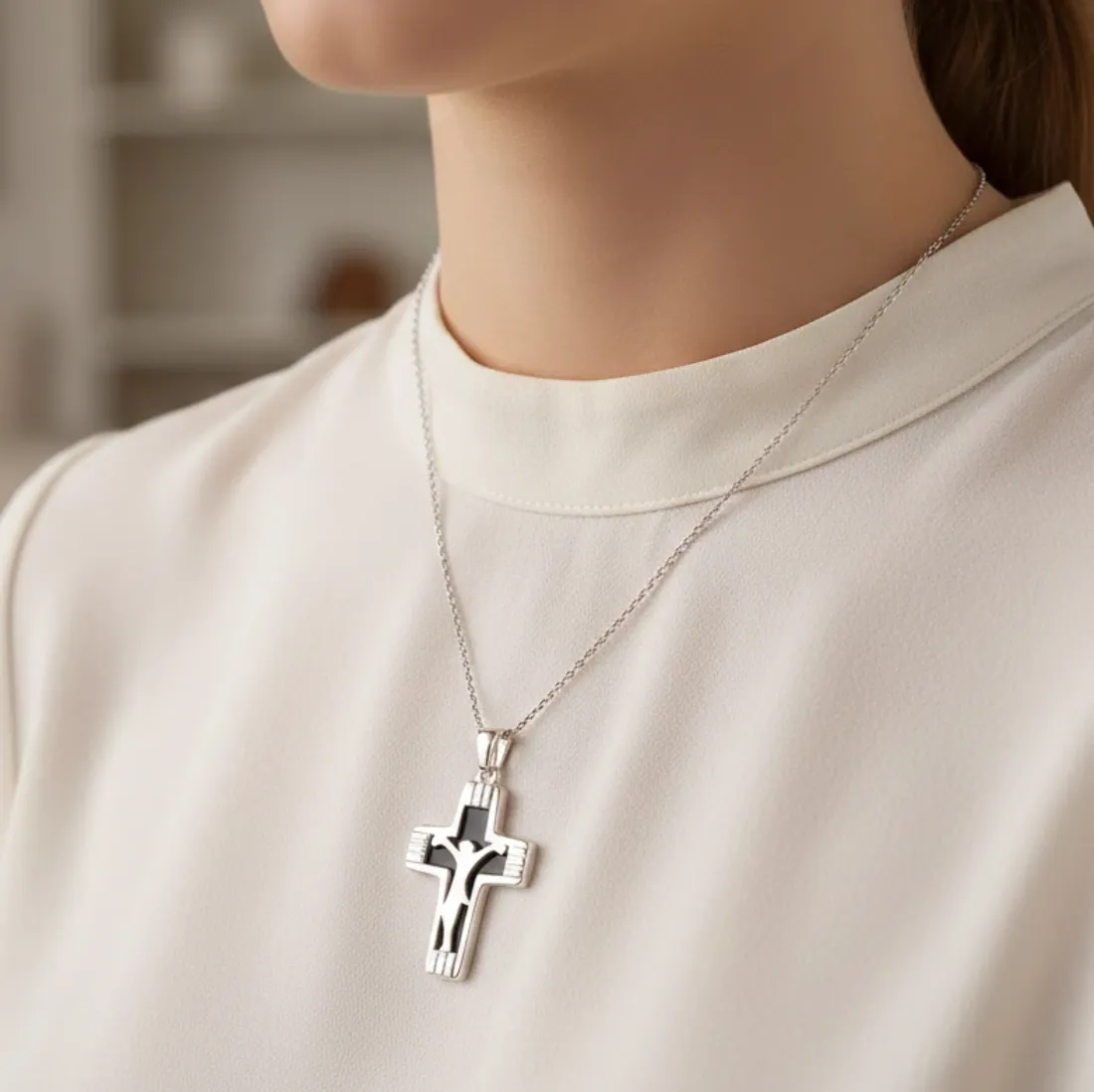 Dije cruz 45 mm acero blanco