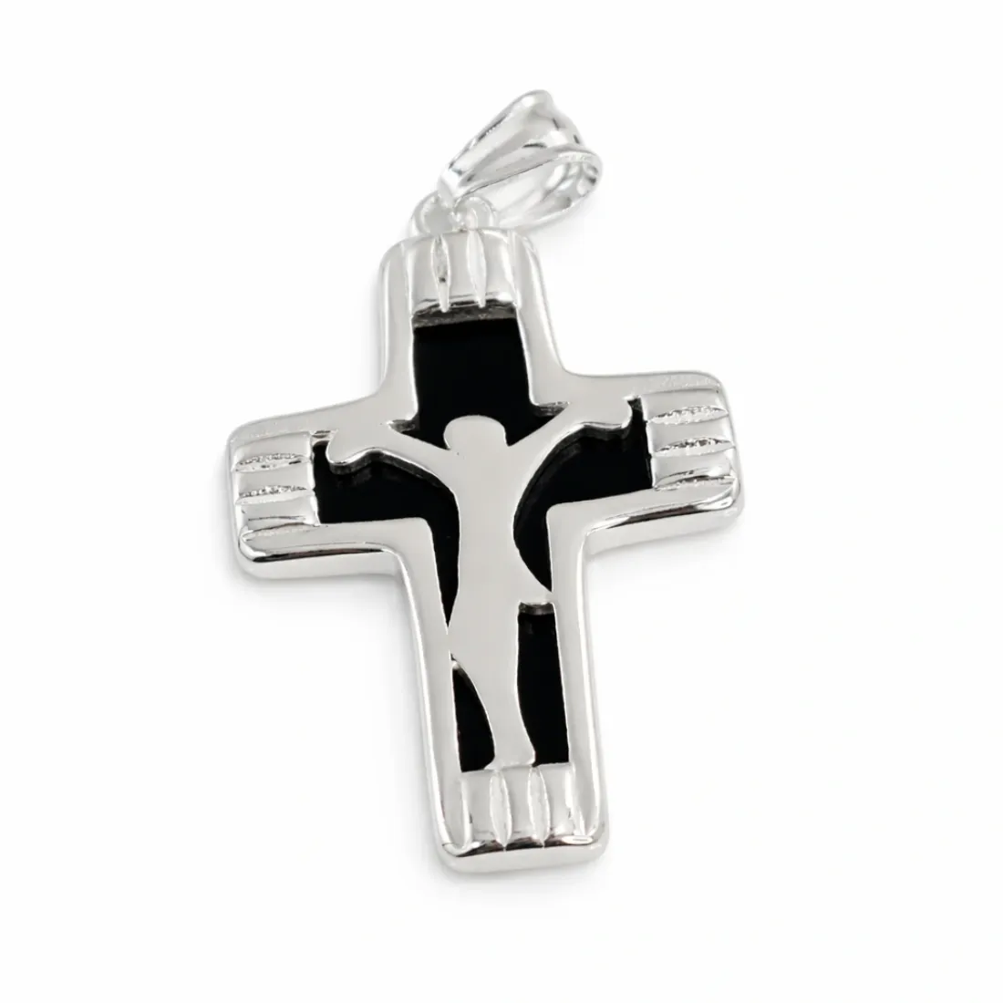 Dije acero blanco cruz ónix 30mm