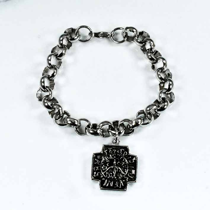 20cm Pulsera acero quirúrgico Medalla Milagrosa y cruz cristal