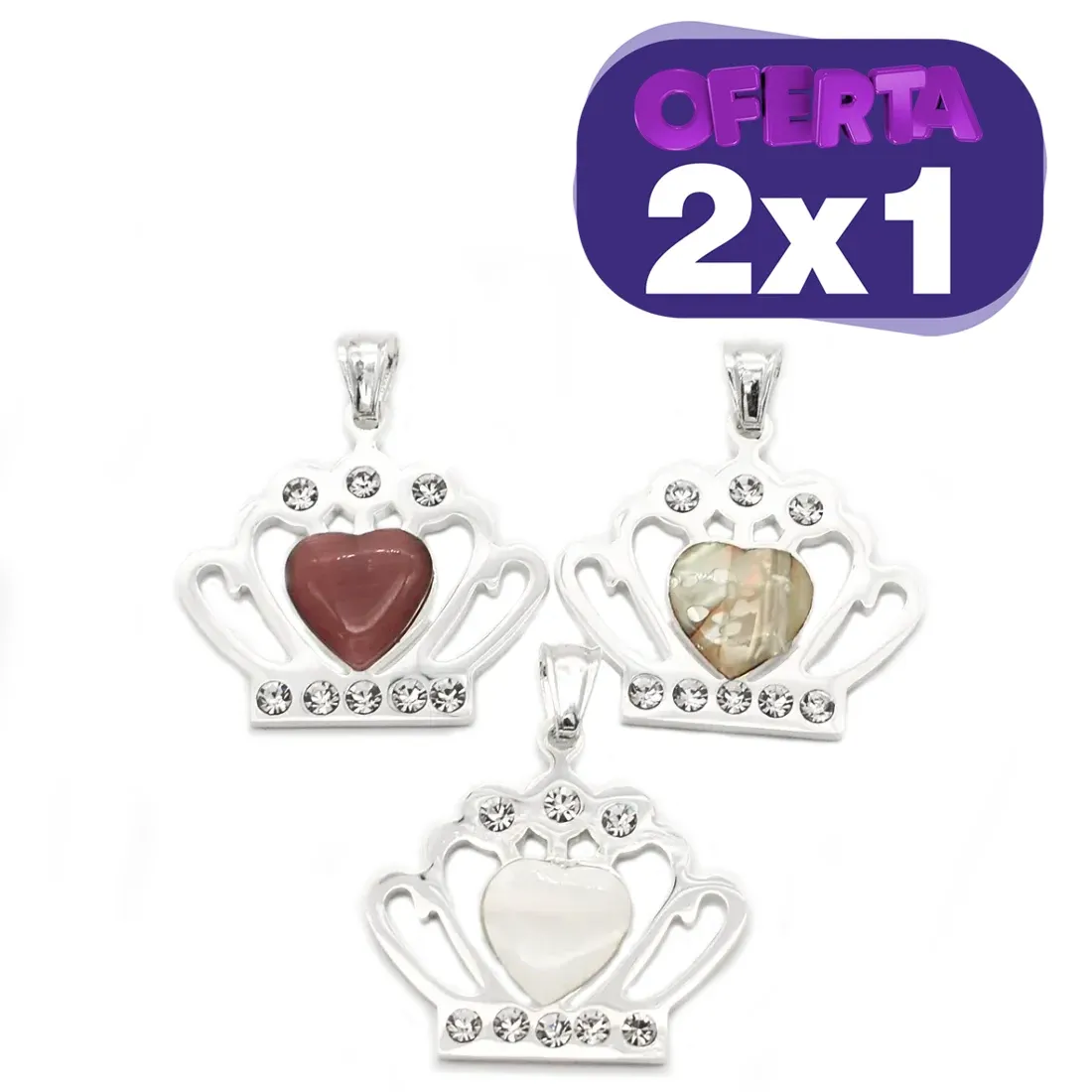 2X1 Di. corona calada corazon 28mm con cristales acero blanco