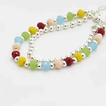 18cm Pulsera doble cristales y bolitas con extensor