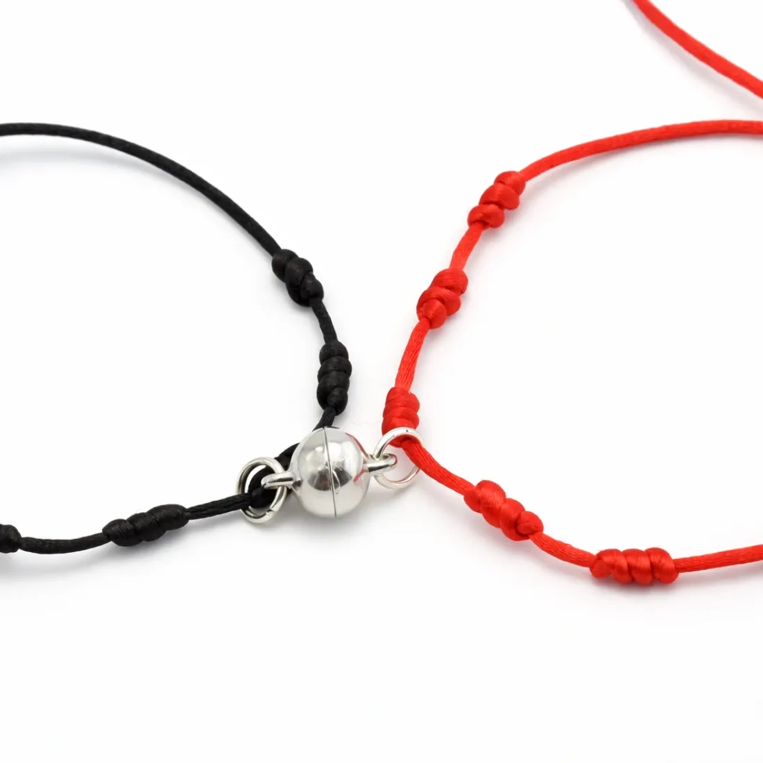 2 Pulseras pareja bolita imantada macrame negras y roja
