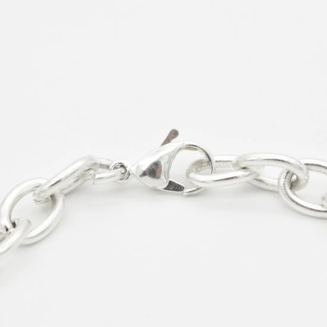 20cm Pulsera forcet con bolitas y dije conejo acero blanco