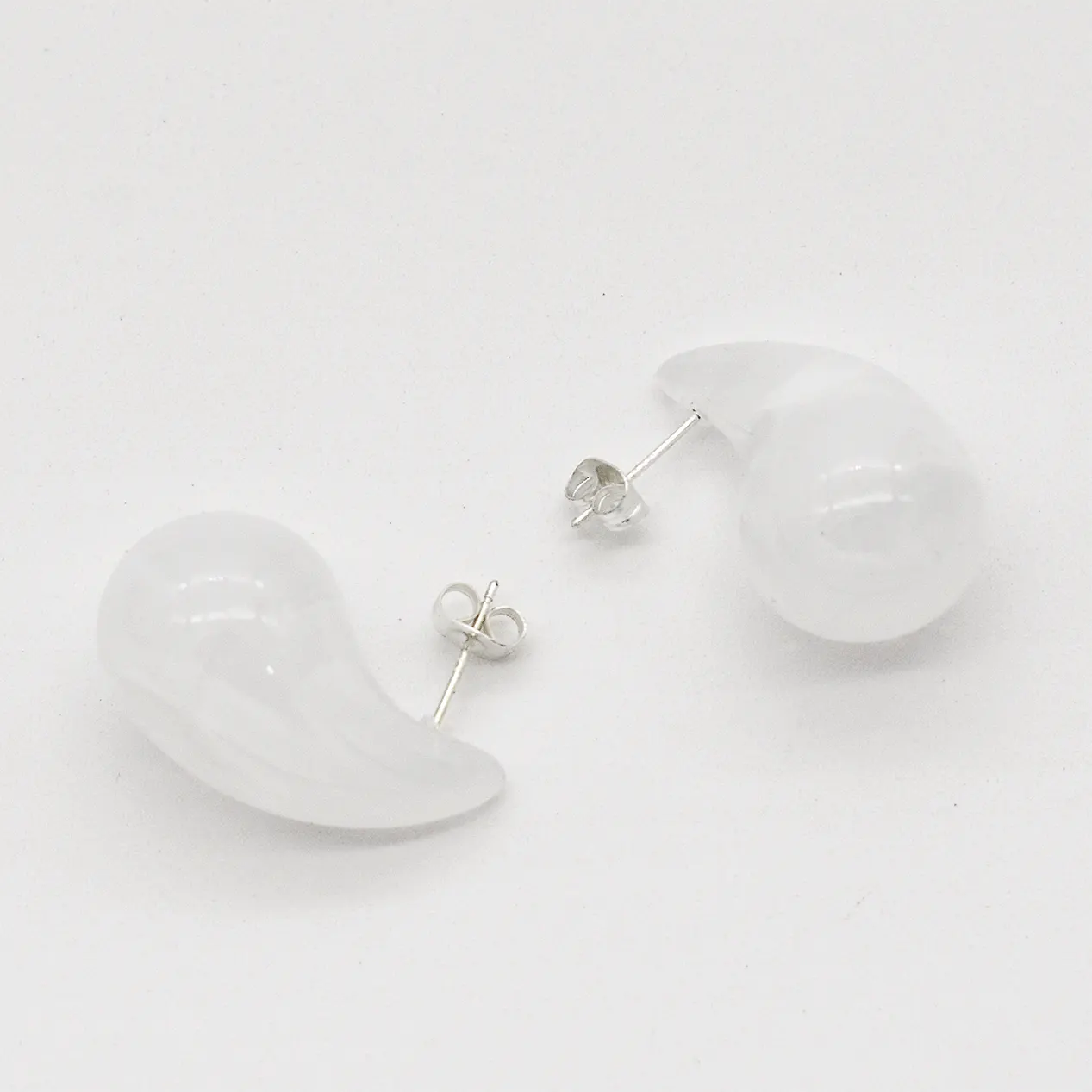 2X1 Aros pasantes gota acrlico cristal acero blanco